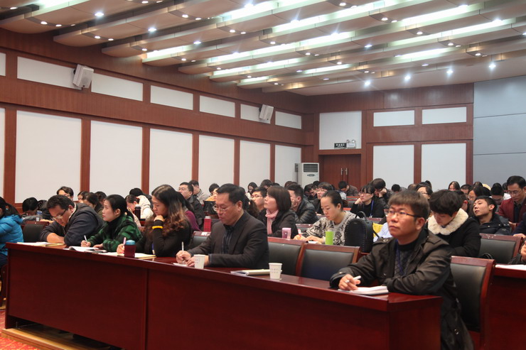 上午,王瑶教授为大家做了题为《助力青春 抚慰心灵——校园心理危机干预策略》的报告,国际会议厅座无虚席,各系行政秘书、全体辅导员老师、心理健康教育中心全体教师均聆听了报告。