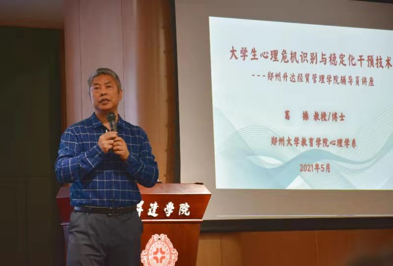 5月20日,郑州大学教育学院葛操教授在双创大讲堂为我校师生带来了两场讲座。学务长张红阳、心理健康教育中心全体教师、各学院行政秘书、100余名辅导员和200余名学生参加了讲座,讲座由张红阳学务长主持。