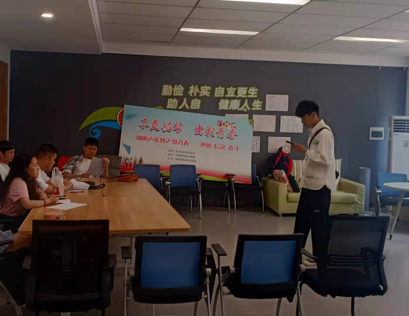 金融贸易学院还开展心理情景剧演员的选拔工作,从50余名积极报名的同学中选出9人,参加《梧桐断角》这一心理剧的编排,希望最终呈现一部满意的作品。