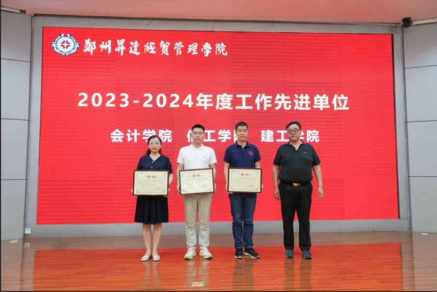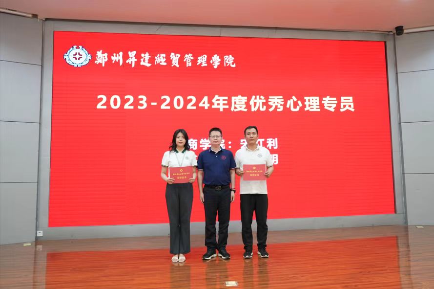 在表彰环节,综合本学年各院心理健康教育工作开展落实情况,经评议并报学校领导审批,授予会计学院、建工学院、信工学院“先进单位”荣誉称号,商学院宋红利、基础部李明明“优秀心理专员”荣誉称号。董事长王新奇、副校长张其武分别为获奖单位和个人颁奖。