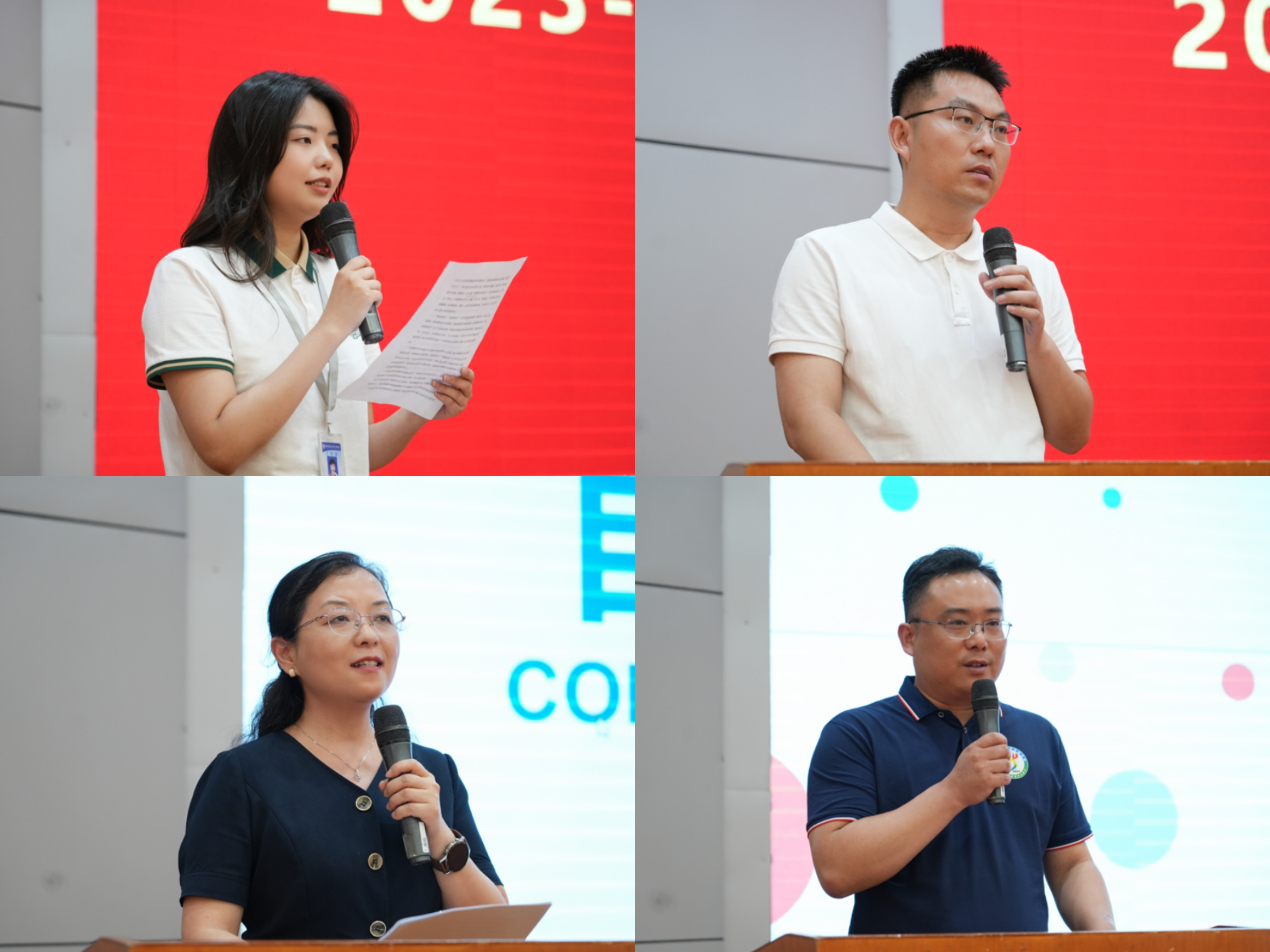 随后,优秀心理专员代表李明明和先进单位代表李赵法分别上台发言。他们从不同角度分享了自己在心理健康教育工作中的经验和感悟,为与会人员提供了宝贵的借鉴和启示。示范站代表单位也上台交流,会计学院党委书记张蕾、文法学院党委书记刘晓川分别介绍了各自学院在心理健康教育方面的创新做法和特色工作,特别是会计学院“做实心理排查”、“做细心理预警”、“做精常态化建设”的工作举措和文法学院“四四三”的心理健康教育体系搭建,为其他学院提供了可复制的成功经验和新的工作思路。