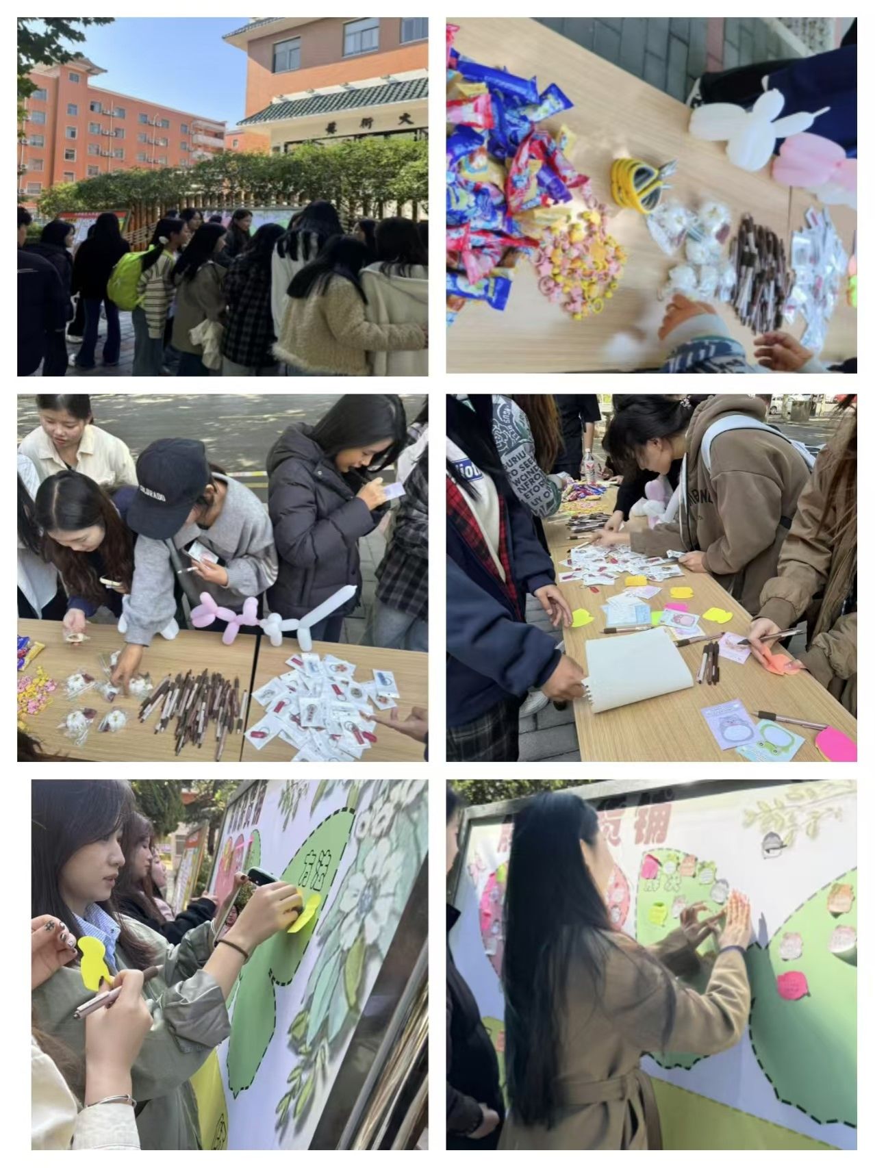 “解忧杂货铺”展板留言活动则是通过在便利贴上写下烦恼和愿望,让同学们得以释放压力、减轻心理负担。这场活动不仅帮助学生疏导情绪,还通过互助和经验分享营造了温馨的校园氛围,鼓励同学们在相互支持中共同成长,成就更好的自己。
