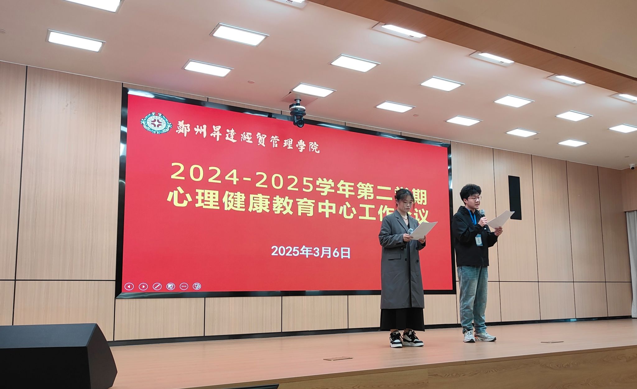 大会在掌声中开幕,主持人张海伦和李晟靓向到场师生致以诚挚欢迎,简要介绍会议流程与重要目的,为会议顺利开展奠定良好基础。会议共有心理健康教育中心风采展示、优秀心理委员表彰及全校心理委员培训三项流程。