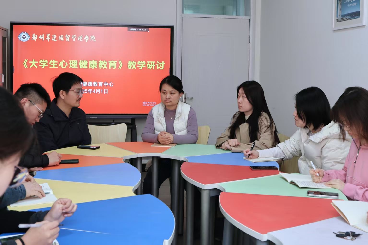 2025年4月1日,《大学生心理健康教育》教学工作会议在心理健康中心209室召开,心理健康教育中心全体专、兼职教师参加会议。