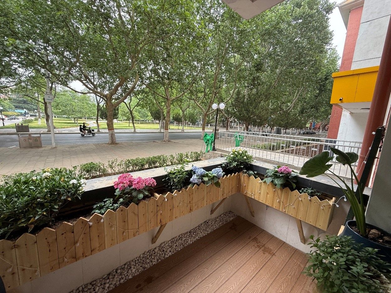 按照设计方案,心理健康教育中心的老师和学生共同对阳台进行了改造。如今,原本普通的阳台焕然一新,摇身一变成为集绿植景观、休闲座椅、艺术装饰于一体的特色空间。花园内种植了绣球花、茉莉花、栀子花等花卉,还有绿萝、常青藤等植物点缀其间,营造出自然宁静的氛围。