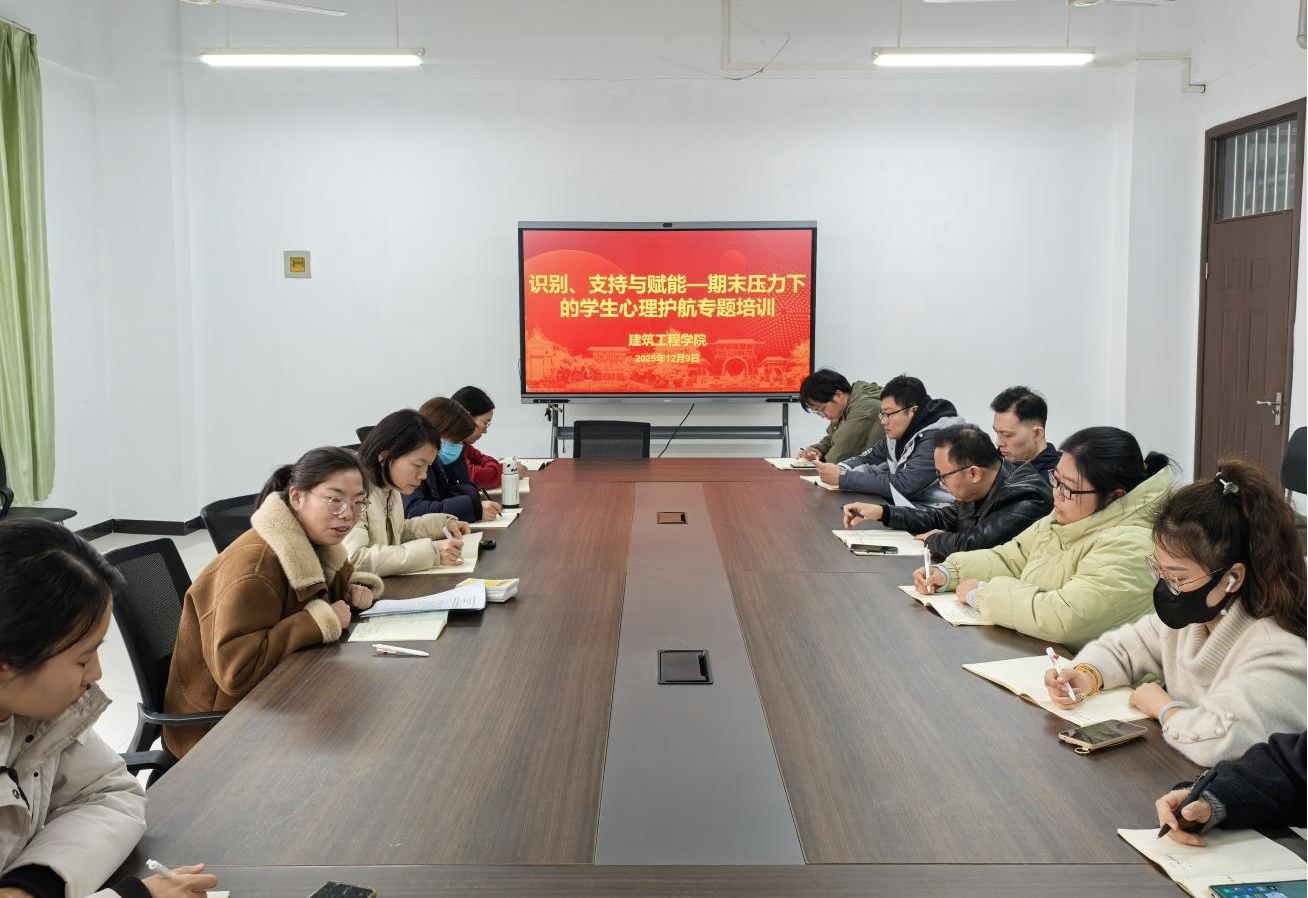 为进一步加强学生心理健康教育工作,帮助学生在期末阶段有效应对学业压力,提升心理调适能力,建工学院于12月9日举办了“识别、支持与赋能——期末压力下的学生心理护航”专题培训会。建工学院党委副书记支园园和全体辅导员参加了本次培训,培训由建工学院彩虹桥心理辅导站站长段续洪主讲。