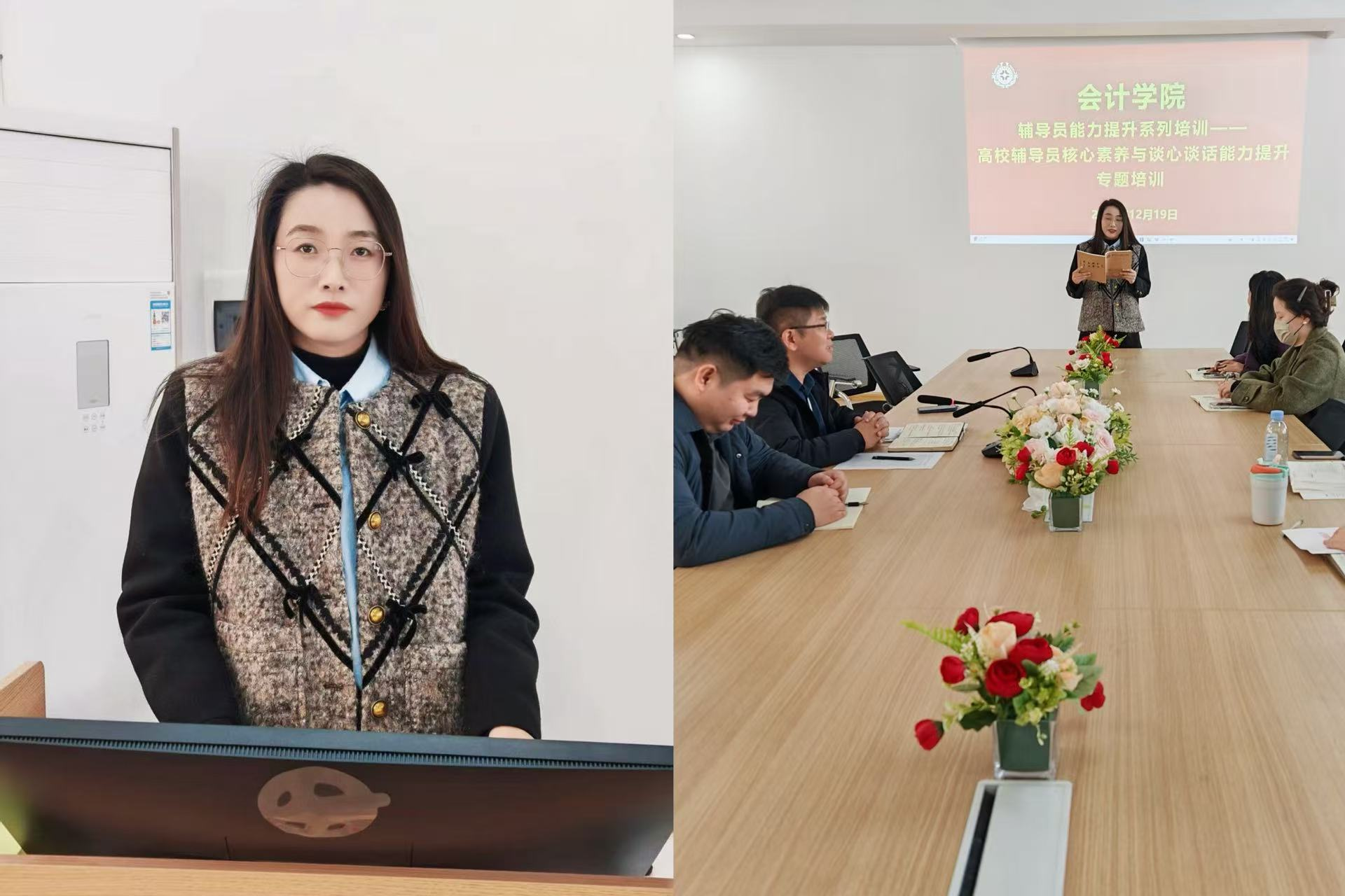 12月19日上午10:30,会计学院在教学四号楼209会议室举办了一场聚焦“辅导员能力提升系列培训——心理健康教育工作技能提升”的专题培训,胡淑娟老师结合前期赴哈尔滨参加“高校辅导员(班主任)核心素养与谈心谈话能力提升专题培训”的学习内容,对谈心谈话的方法技巧、心理健康教育工作的核心要点展开了系统讲解。