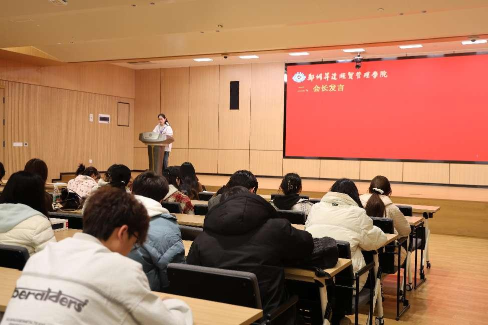 会议伊始,梁钊老师发表了致辞,对心桥心理社团在过去一年中所取得的成绩表示肯定,并鼓励社团成员继续努力,为校园心理健康教育贡献力量。