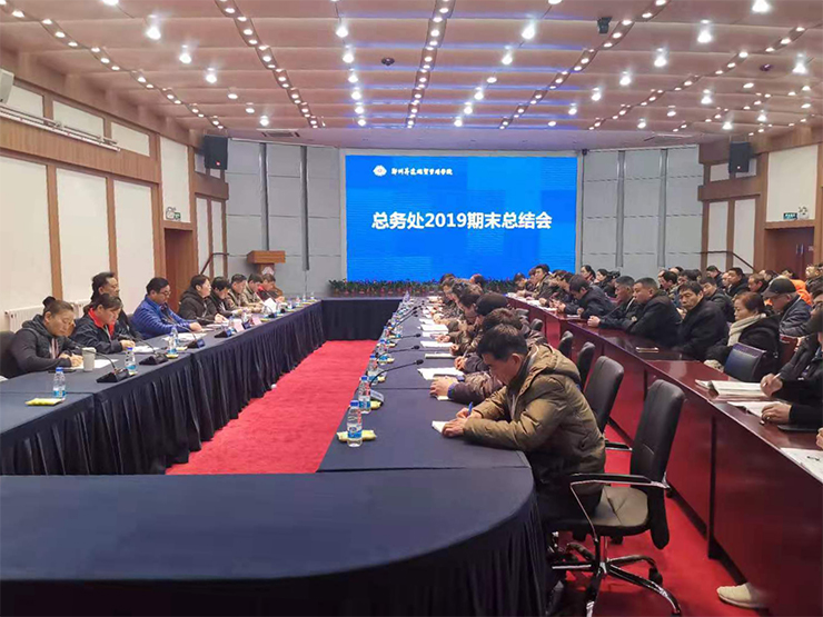 1月7日下午,总务处全体职工在行政楼国际会议厅召开了2019—2020学年第一学期期末总结大会。学校执行董事王新奇、总务长张其武、总务长助理冯亚飞、事务科科长务孟俊、事务科副科长虎会飞、保卫科科长程宪中、保管科科长王洢楠、营建科科长申志萍、伙食科科长刘超及各科室职员、工人100余人参加了会议。会议由总务长张其武主持。