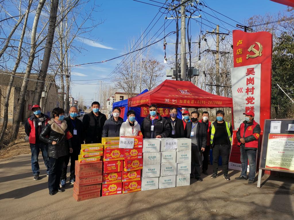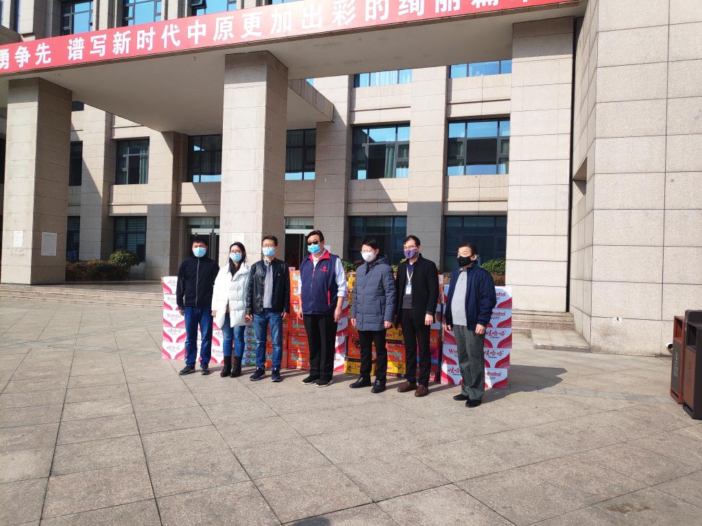 2月12日,我校执行董事王新奇、副校长兼总务长张其武、统战部部长兼发展规划处处长沈定军、公关室主任赵万友等一行赴新郑教育园区管委会、登封市卢店镇镇政府、龙湖镇宝相寺村值班点、卢店镇吴岗村值班点等地,代表学校先后给疫情防控的一线值班人员送去了慰问品火腿肠40箱、方便面80箱、矿泉水80箱。