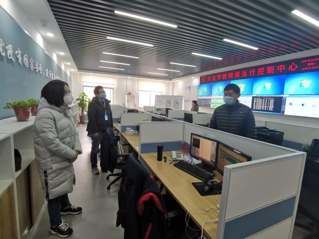 自疫情防控工作开展以来,校长郭爱先、党委副书记兼纪委书记戎庭银、副校长兼总务长张其武等校领导先后到信息化办公室、现教中心检查指导工作,校领导肯定了疫情防控期间信息化办公室和现教中心在线上办公、保障教学等方面所做的技术保障,并对全体同仁在假期和延迟开学期间的辛勤付出表示慰问;校领导指出,疫情防控期间,更凸显了线上办公、信息化建设和现代教育技术应用的重要性,信息化办公室、现教中心要抓住时机,全面了解师生对信息化应用的需求激增情况,努力推进信息化建设进程,更好地为学校发展和师生服务。