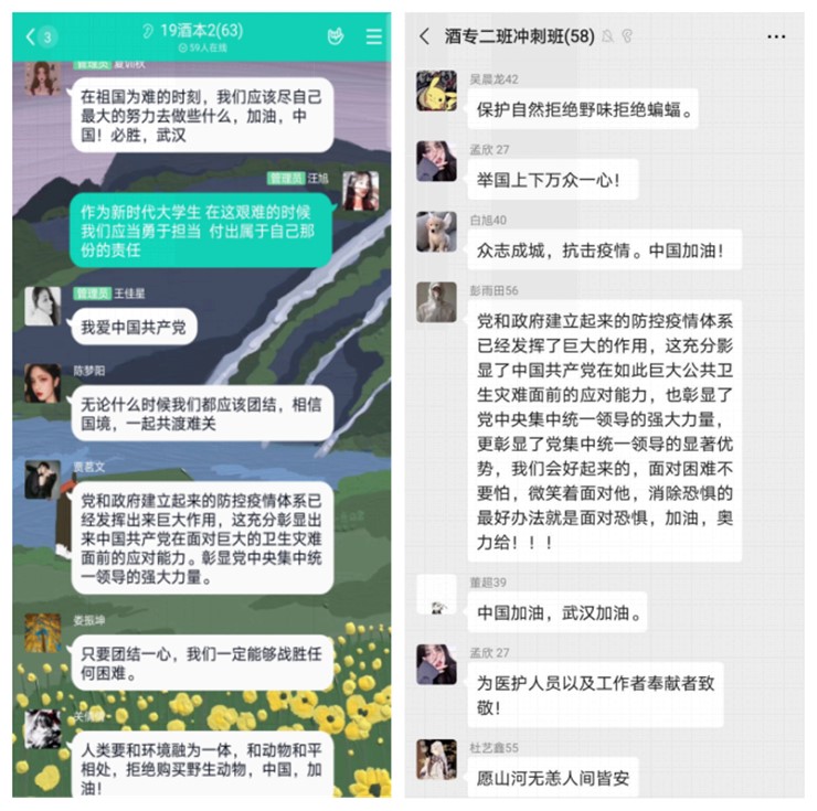 马克思主义学院翟效颜老师说,面对疫情,我们每个人都深切感受到了家国情怀和社会主义大家庭的温暖。大学生是实现中华民族伟大复兴的后备力量,是影响社会主义现代化建设进程的重要力量。作为思政课教师教师要积极引导学生树立崇高的理想信念,培养他们的责任担当和纪律意识,让他们时刻把个人前途命运与国家、民族的前途命运紧密联系在一起,尽心尽力、实干进取,在社会主义现代化建设的伟大实践中建功立业、书写人生辉煌。