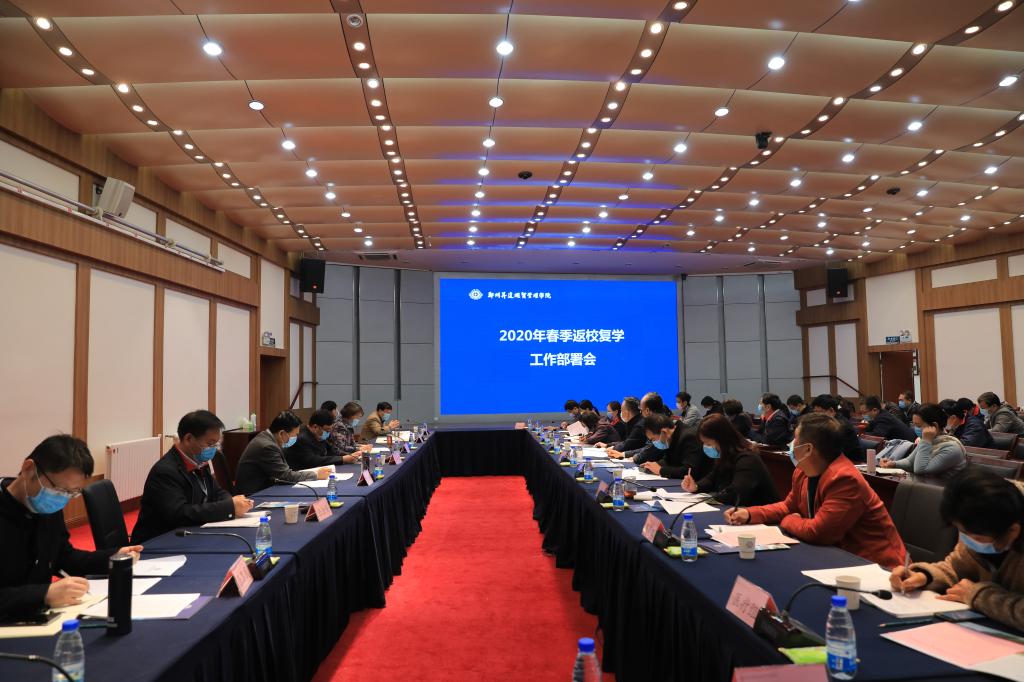 4月9日上午,我校在行政楼国际会议厅召开2020年春季返校复学工作部署会,安排部署返校复学相关工作。校领导执行董事王新奇、校长郭爱先、党委书记张德伟、党委副书记兼纪委书记戎庭银、副校长兼工会主席张金安、副校长兼教务长吴益民、副校长兼总务长张其武和我校疫情防控工作指挥部各工作专班组长及各单位中层干部参加会议。会议由我校疫情防控工作指挥部组长郭爱先校长主持。