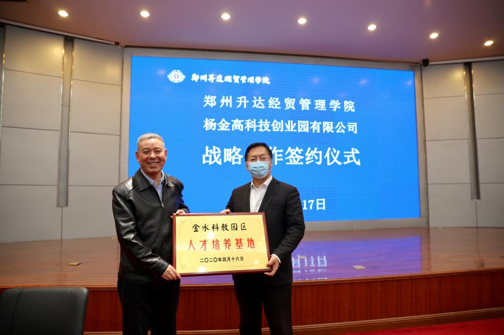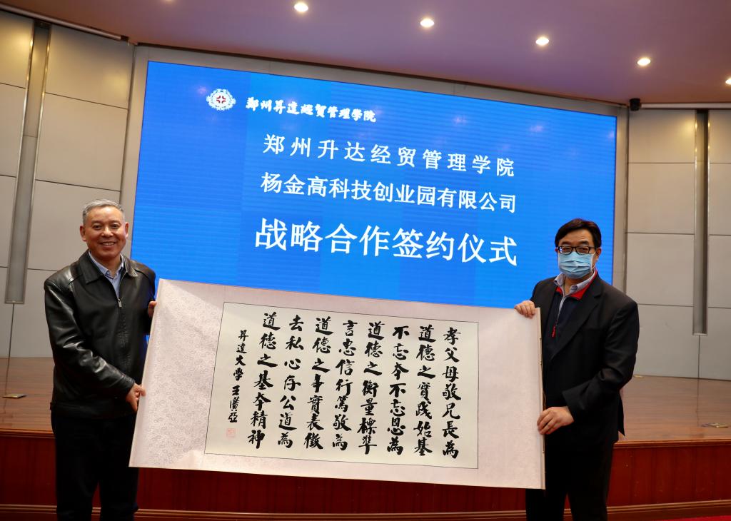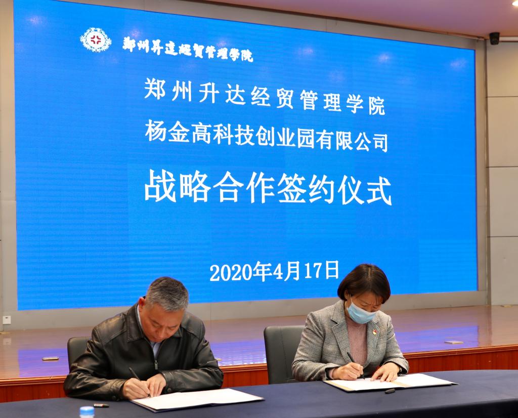 我校校长郭爱先与杨金高科技创业园区有限公司总经理张保柱代表双方签署了战略合作协议。