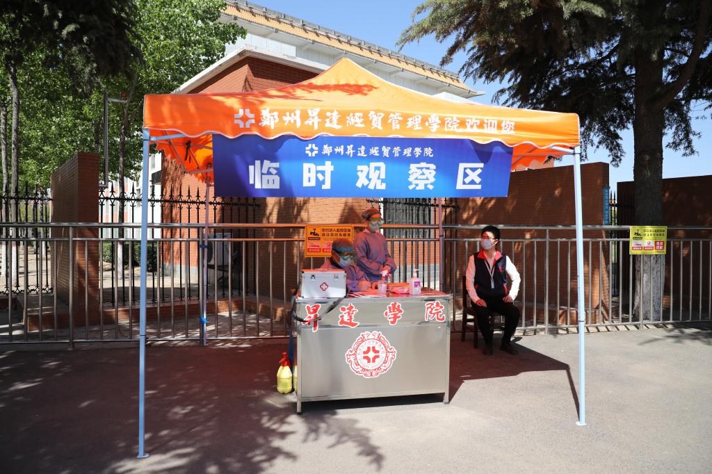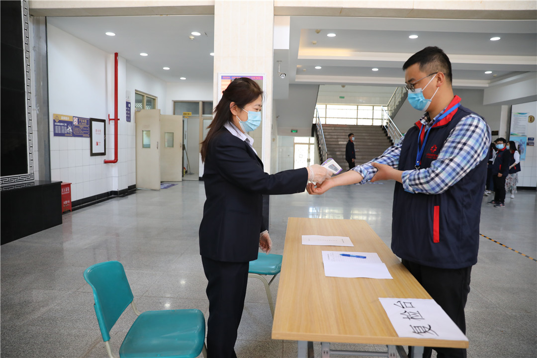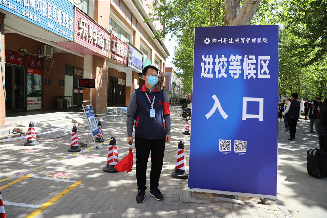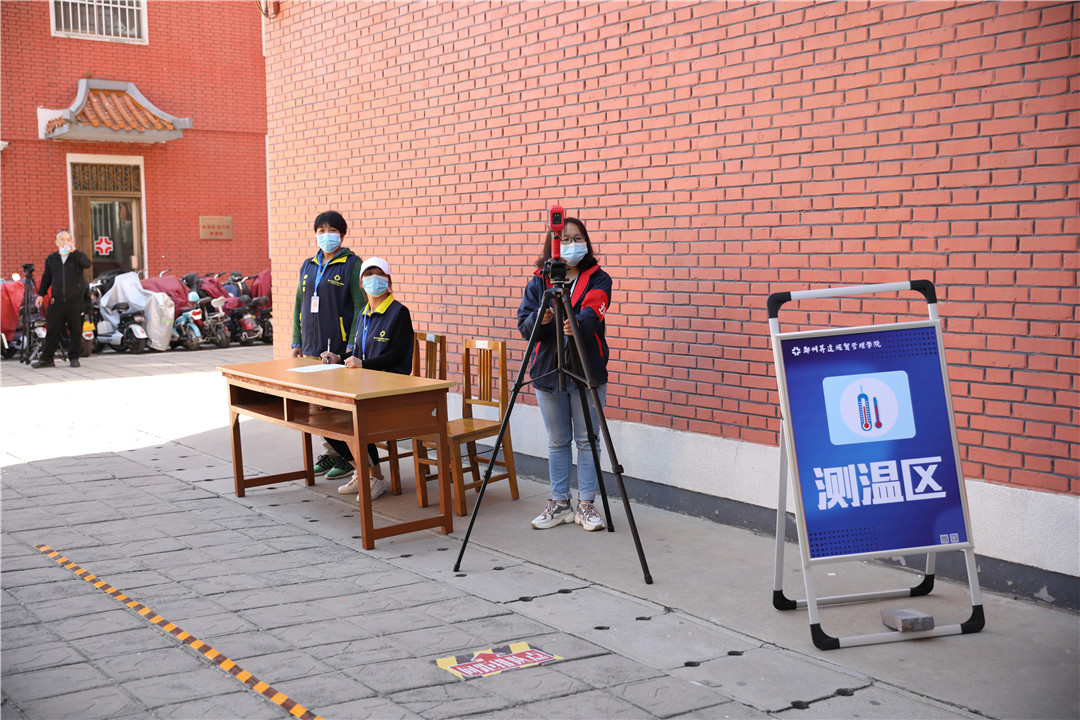 我校在西大门外南侧设置了进校等候区,工作人员负责引导“学生”到等候区,指导学生提前准备健康扫码信息,保卫人员负责交通疏导。“学生”在等候区有序排队,间隔1.5米。“学生”扫描二维码,扫码结果为绿码者,依次在通过式温度探测门迅速测量体温,体温正常者在指定入口刷脸验证身份信息,确保是本校学生后,允许进入校园。发现体温异常的“学生”,立即启动应急处置程序,迅速带至校门外临时观察区,并及时对测温现场进行消杀处理。临时观察区医护人员给“学生”发放一次性医用外科口罩,指导其正确佩戴;同时进行旅居、接触史等流行病学调查、信息登记和体温复检。复查体温正常者,进入身份信息核验阶段,验证通过后进入校园。如果体温复检仍异常者,或具有流行病学特征和症状表现,第一时间上报学校疫情防控指挥部,用疫情防控专用转运车辆转送至河南省第二人民医院发热门诊进一步检查、排查。