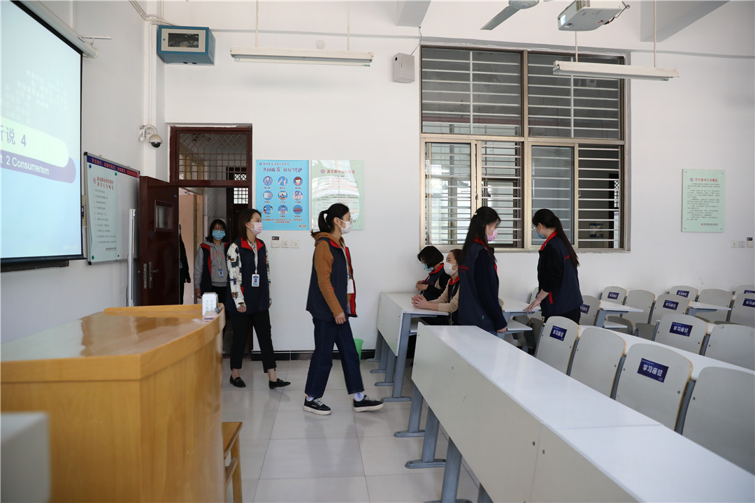 “学生”返校后,宿舍楼疫情防控实行四级“网格化管理”,一级网格长为学院院长或党总支书记(具体到宿舍楼),二级网格长为学院辅导员和青年骨干教师(具体到楼层),三级网格长为班级学生骨干(具体到宿舍区间),四级网格长为宿舍负责人,各级网格长分工明确,职责到人。宿舍楼封闭管理,出入口分开,严控人员进出。宿舍楼设置值班点,按照上午、下午、中午、晚上四个时间段进行值班。志愿者协助值班老师做好外出就餐学生信息登记、组织“学生”错时错峰排队洗漱如厕、提醒学生不在公共区逗留,降低宿舍区学生密度,减少接触。