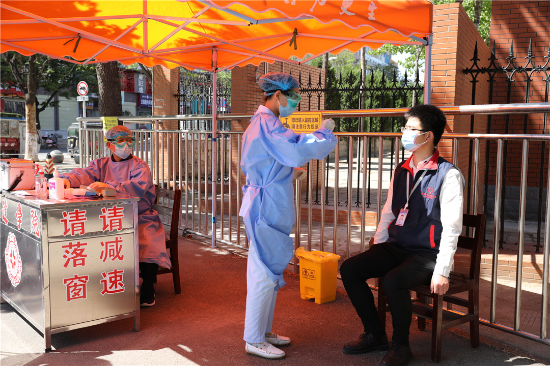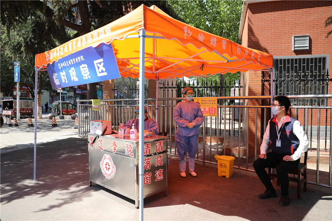 临时观察区医护人员同时对体温异常“学生”进行旅居、接触史等流行病学调查、信息登记和体温复检