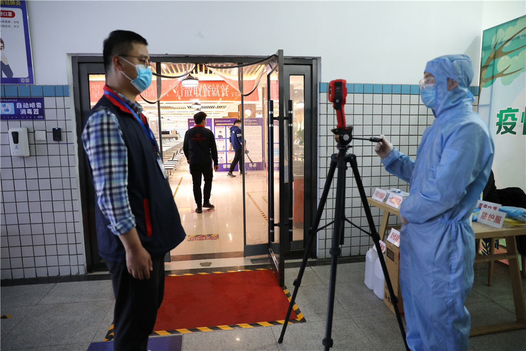 餐厅入口处设置红外测温仪检测体温,体温正常者进入餐厅购餐