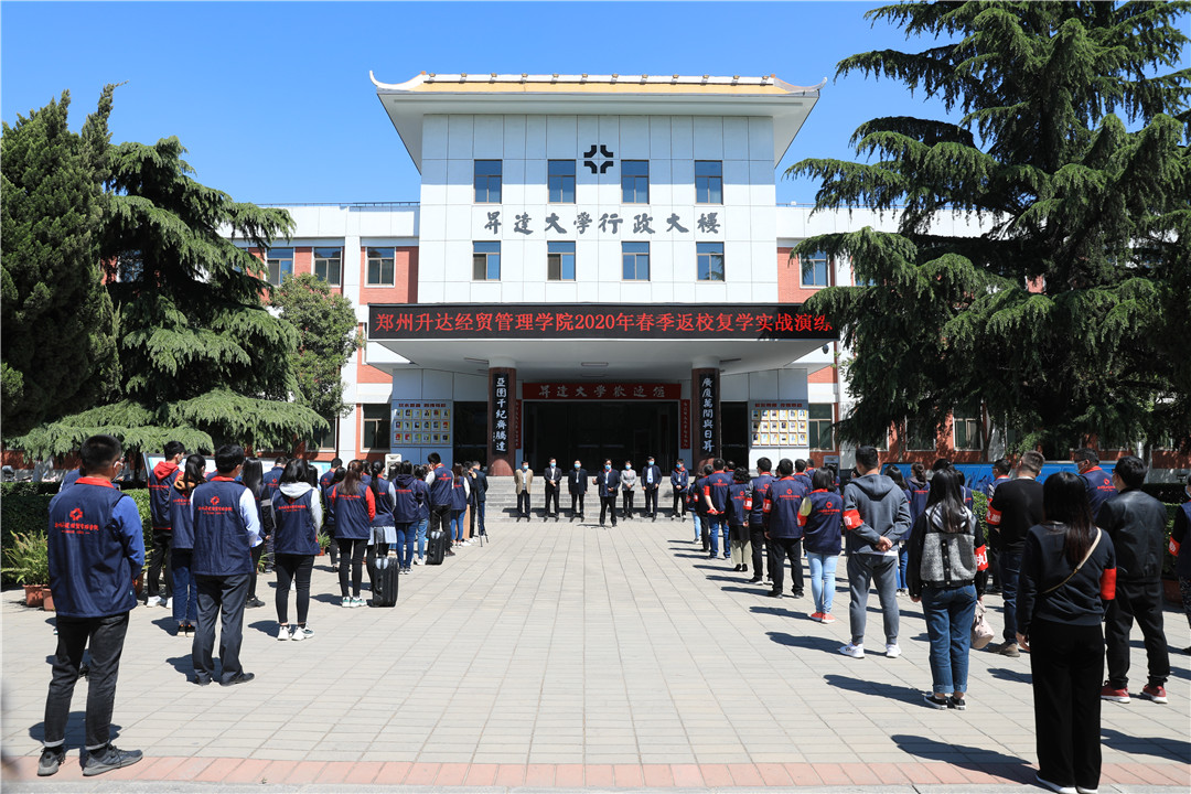 党委书记张德伟对我校返校复学实战演练提出了三点要求,一是认真演练。所有参加演练人员都要以实战的姿态、认真的态度进行演练,都要认真严肃的对待,不能走过场。只有认真演练,才能够实际检验学校返校复学方案。二是规范操作。每个模拟演练岗位的人员,都要按照返校复学实战演练的具体要求操作,在每个流程、每个环节都要做到规范。只有这样,才能正确检验学校返校复学方案的合理性和可操作性。三是总结完善。各个工作组要通过实战演练,认真梳理和查找方案中的不足,进一步完善方案,使方案更科学、更合理、更有操作性。动员会最后,校长郭爱先宣布:郑州升达经贸管理学院2020年春季学生返校复学实战演练开始。