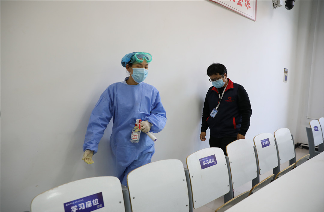 校医院对体温异常和身体不适者进行健康问询,重新测量体温