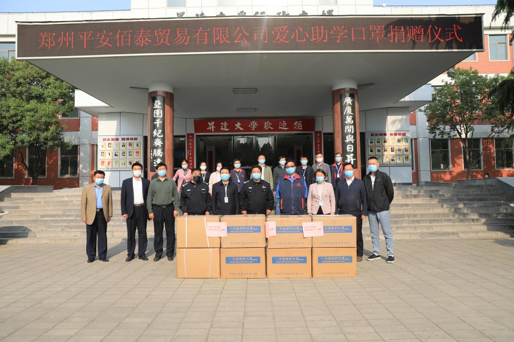 战“疫”统一战线上,总有那么“一双手”互相扶持,共克时艰。新冠肺炎疫情发生以来,社会各界一直关心关注我校疫情防控工作,我校也多方联系,积极寻求外界支持帮助。郑州平安佰泰贸易有限公司急学校之所急,通过各种途径为学校捐赠30000只口罩和100件防护服,以实际行动支援我校战“疫”。