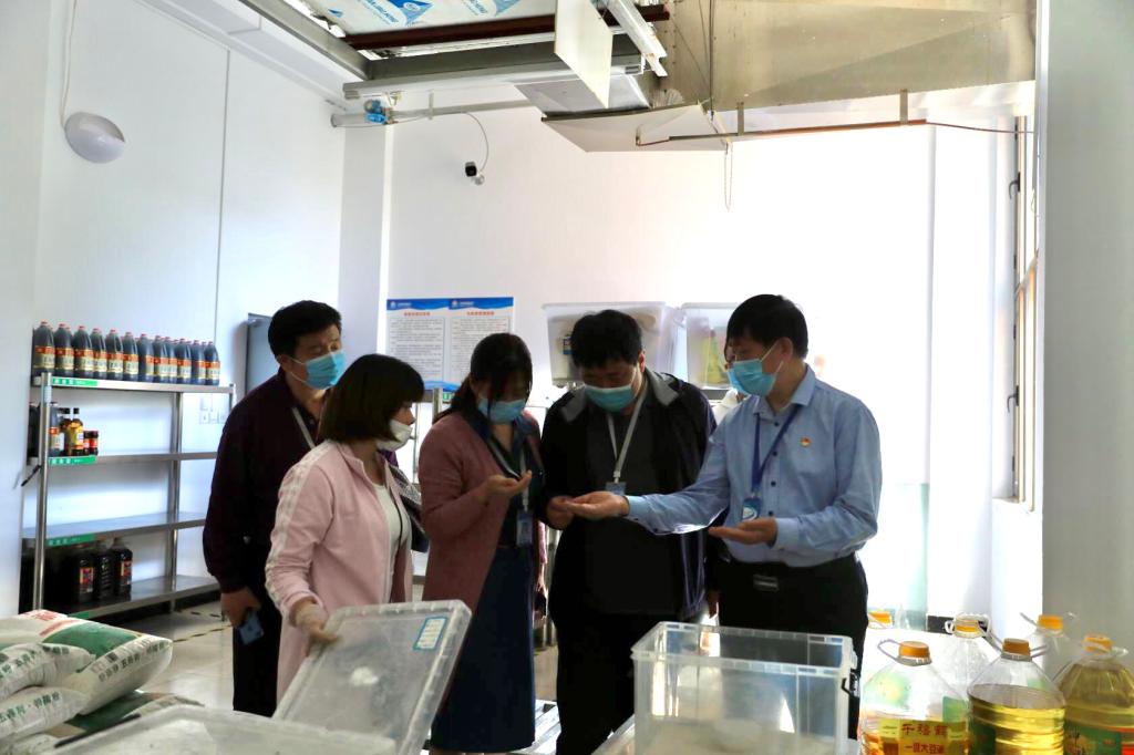 戎副书记还深入到食堂厨房、操作间、仓库等重要区域,对食堂环境卫生、食品原材料质量、设施设备等情况进行全面细致地检查,并详细了解了疫情期间食堂日常安全管理措施。