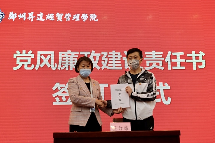 会上,张德伟书记、郭爱先校长分别代表校党委和校行政与各党总支书记、直属党支部书记和各教学院(部)院长(主任)签订了《2020年度党风廉政建设责任书》。