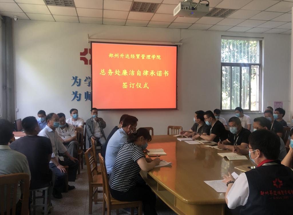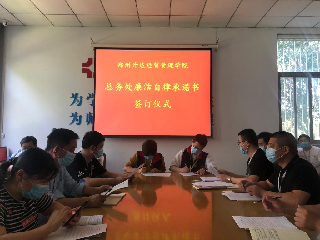 最后,副校长兼总务长张其武现场分别与各科科长、职员及各班组长逐一签订了《行政人员廉洁自律承诺书》。