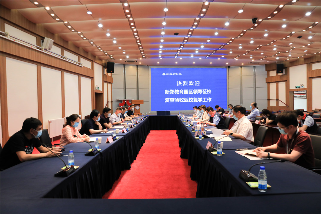 5月21日上午,郑州新郑教育园区管委会常务副主任杨春峰、新郑教育防控部第二督导组责任领导陶显峰、副组长郭建伟等领导,莅临我校对返校复学准备工作进行复查验收。我校领导执行董事王新奇,校长郭爱先、党委书记张德伟、党委副书记兼纪委书记戎庭银、副校长兼工会主席张金安、副校长兼教务长吴益民、副校长兼总务长张其武和我校疫情防控工作指挥部各工作专班组长参加汇报会。