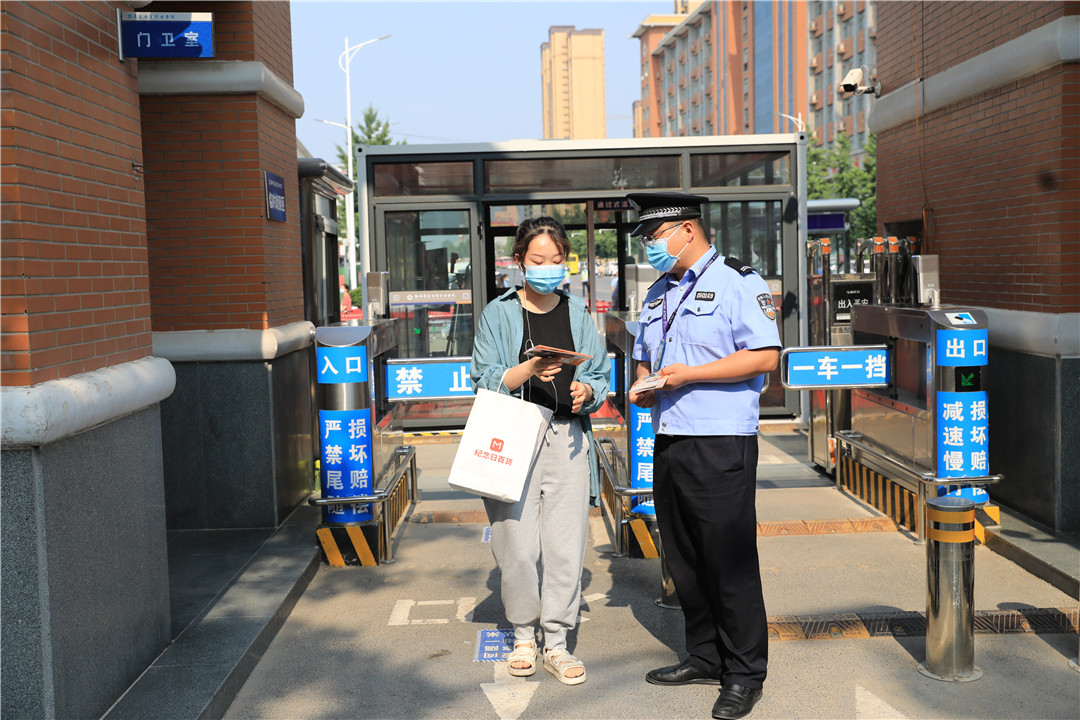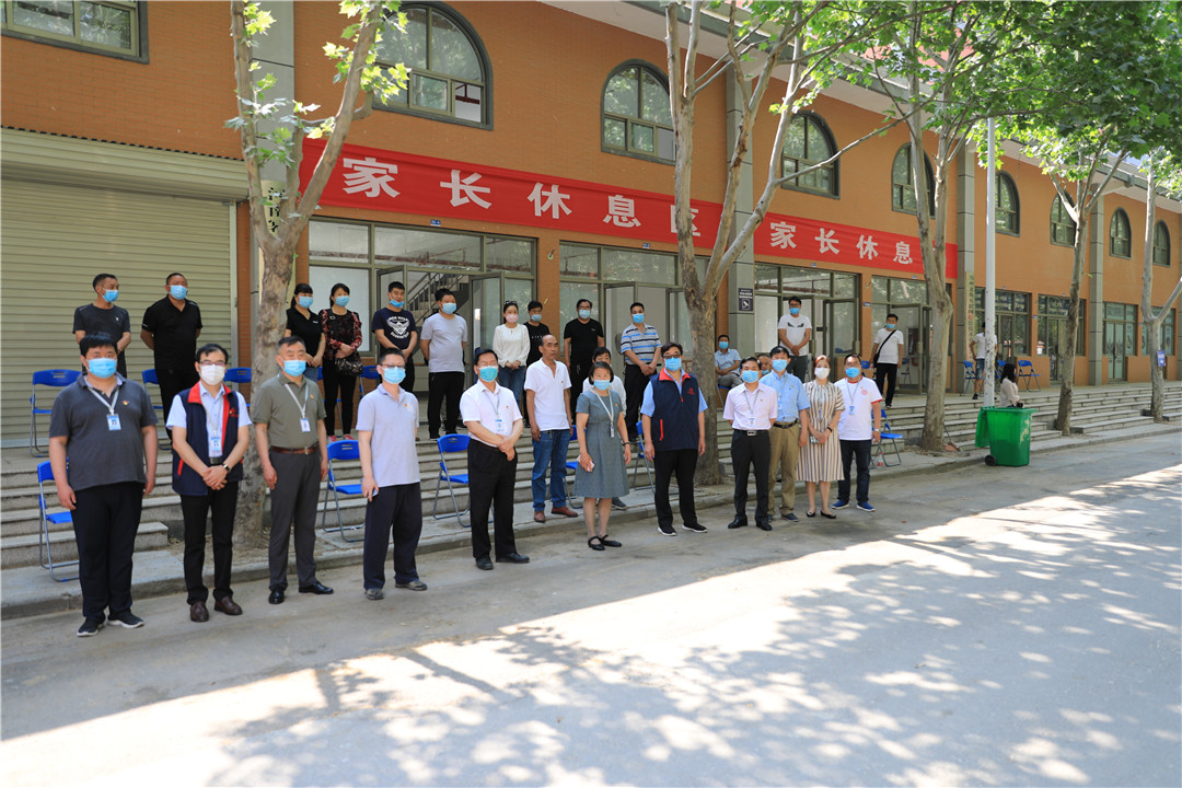 通往学校的升达大道两旁,早几天就挂满了彩旗和标语,在等待着学子们的归来。接待工作中最辛苦的要数学校保卫科的工作人员了,他们早上5点全班人马就上任了,有做教工进校登记的、测体温的,有专门负责接待学生的等等,各司其职有条不紊。校门口还有一先行军是由教职工组成的志愿服务队,在等待着学生们的到来。