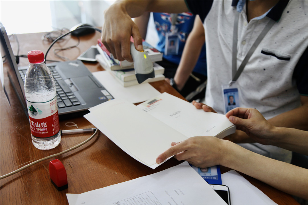 在此还有一批默默的工作者:学校图书馆的工作人员。为了不让学生们多跑路、便于还书,图书馆在各个报到处都设置了工作点,可谓一站式服务。很多同学表示,他们会怀念母校的,将来在新的人生征程上,一定努力工作为母校争光,也一定会常来家看看。