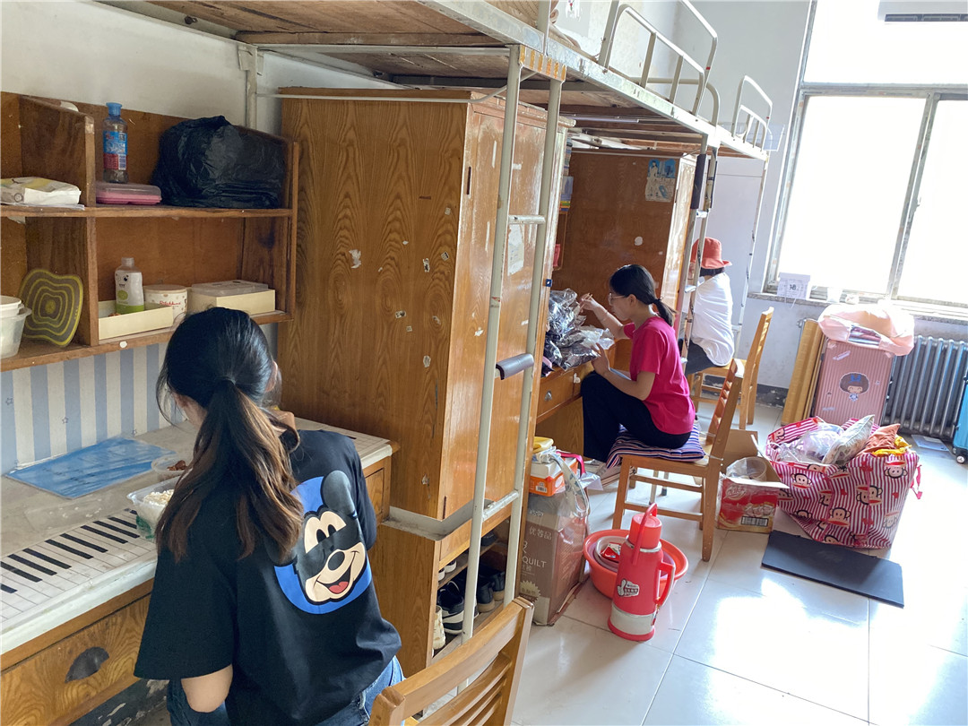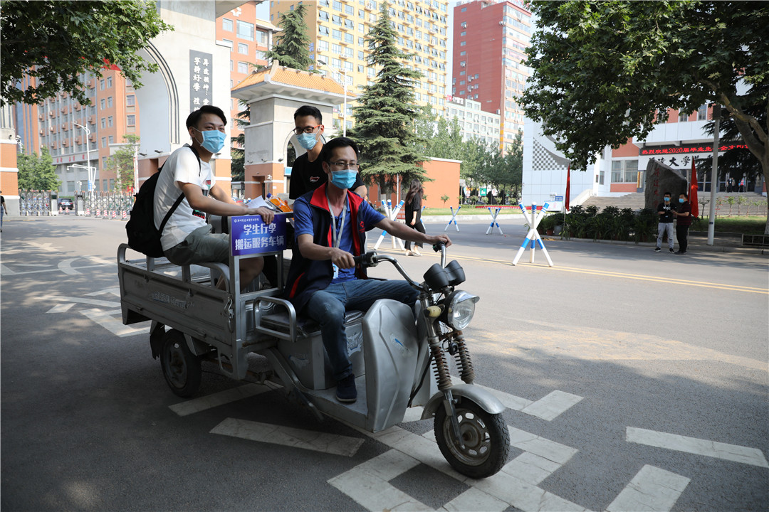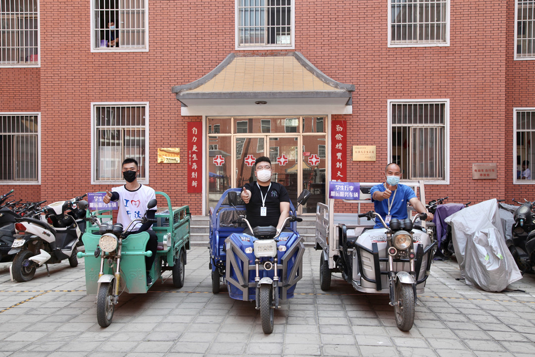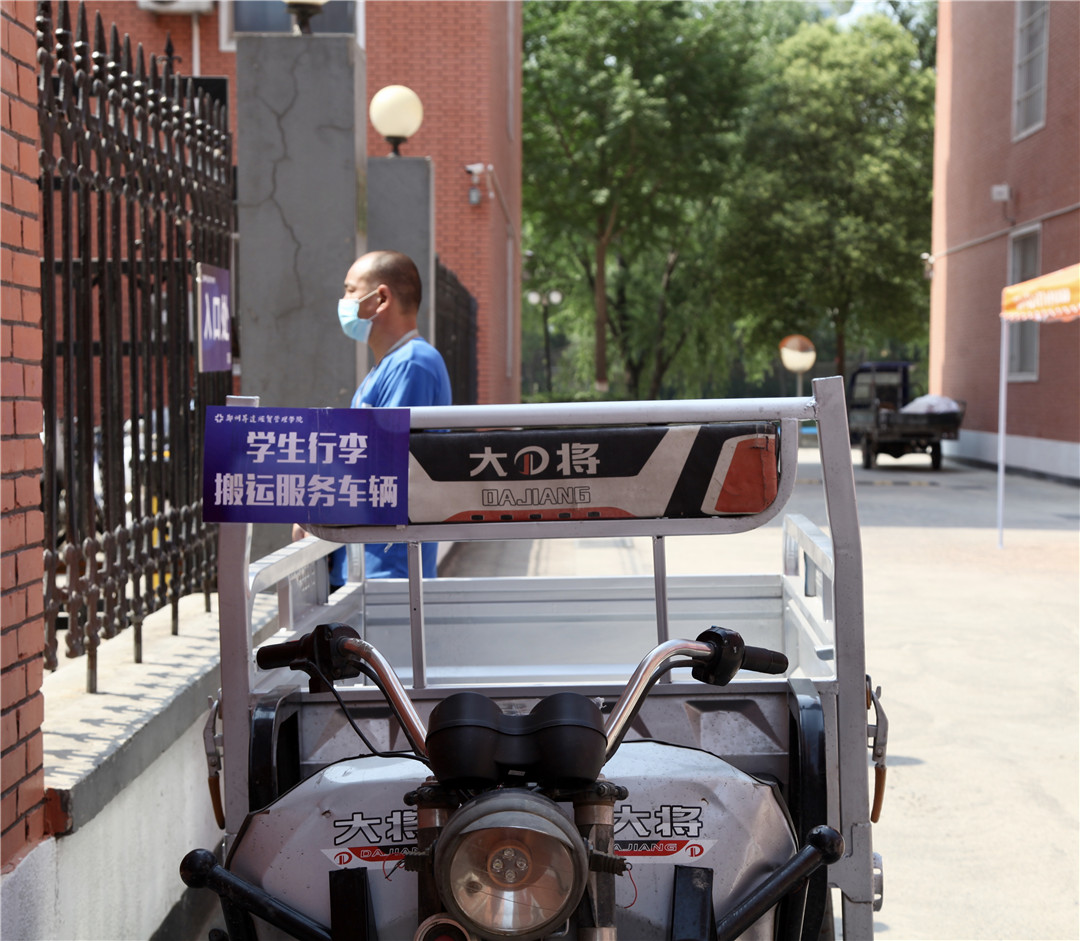 在学生宿舍楼下,学校提前安排的行李托运点、废旧物品回收点、电动车回收点等早已就绪,学生不费周折即可将自己的物品妥善处理。按照统一要求,本次返校自驾车辆不能驶入校园,学校提前准备了三轮车,由志愿者老师驾驶,为学生提供帮助,将行李运送至校外家长休息区。为充分做好不返校学生的宿舍物品整理、打包和邮寄工作,文法学院和体育学院实行包干服务,老师对接宿舍,他们有的爬上上铺,有的俯身床下,尽力将同学们的物品应收尽收,完成打包、整理和邮寄。在特殊时期老师们冲锋在前、热情服务、不顾劳累,送给学生们特殊的关爱,用实际行动践行教书育人的光荣使命。