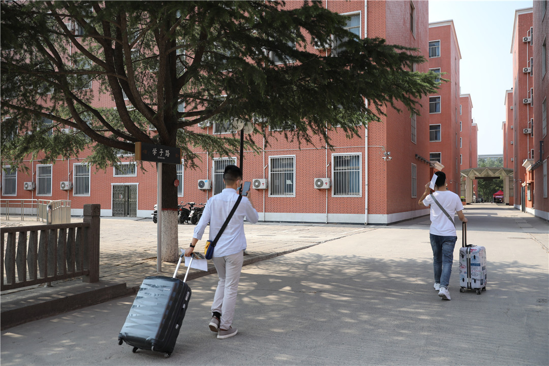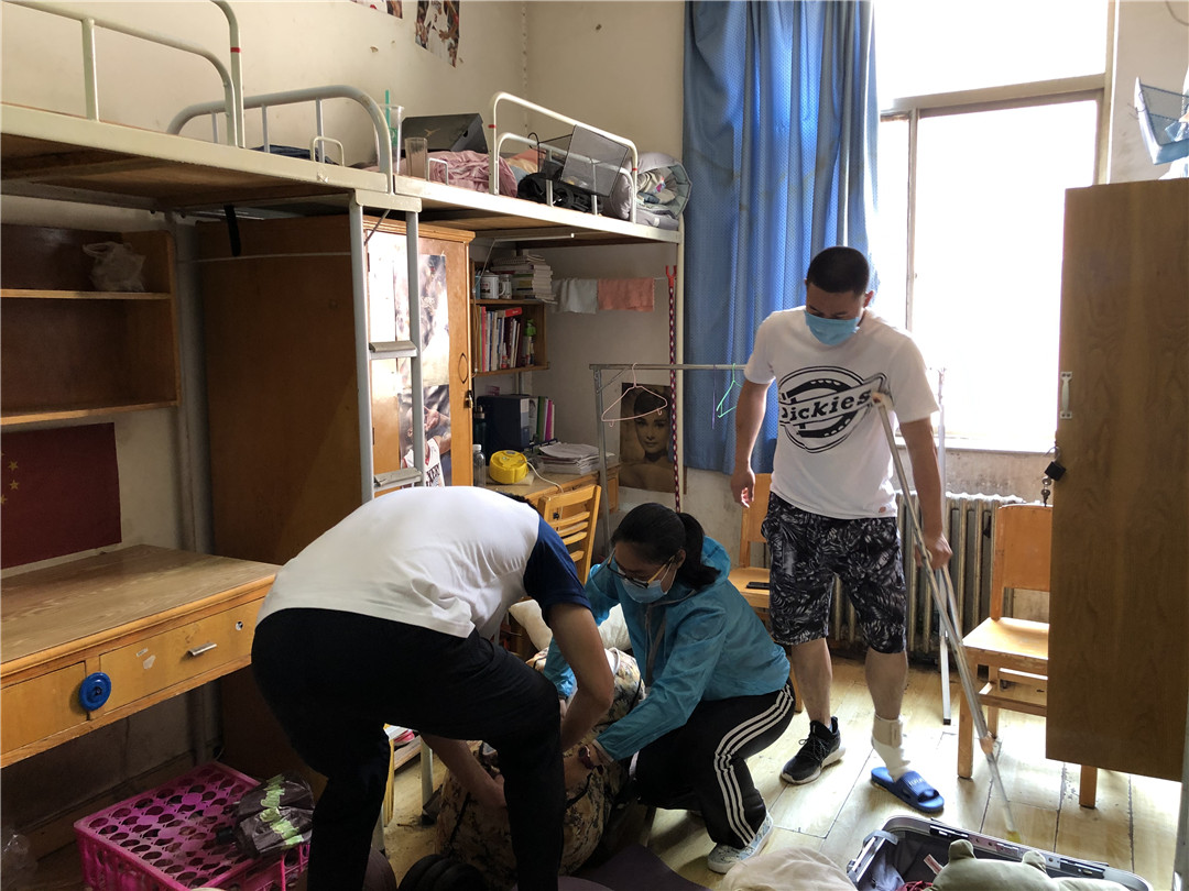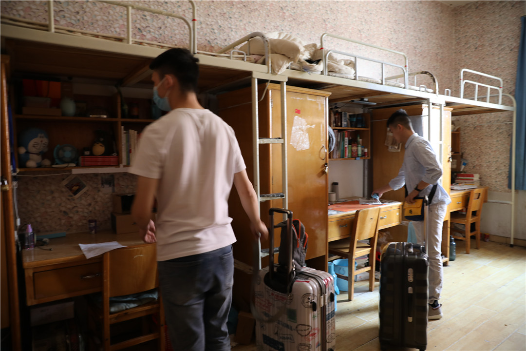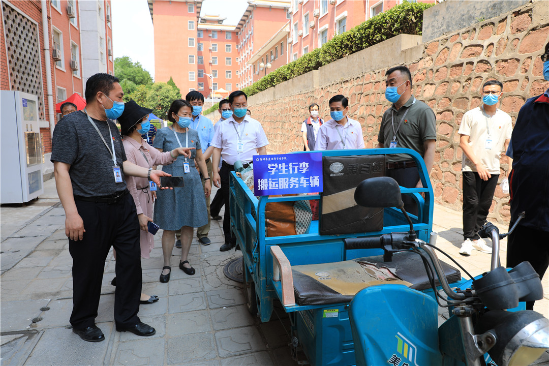 在学生宿舍楼下,学校提前安排的行李托运点、废旧物品回收点、电动车回收点等早已就绪,学生不费周折即可将自己的物品妥善处理。按照统一要求,本次返校自驾车辆不能驶入校园,学校提前准备了三轮车,由志愿者老师驾驶,为学生提供帮助,将行李运送至校外家长休息区。为充分做好不返校学生的宿舍物品整理、打包和邮寄工作,文法学院和体育学院实行包干服务,老师对接宿舍,他们有的爬上上铺,有的俯身床下,尽力将同学们的物品应收尽收,完成打包、整理和邮寄。在特殊时期老师们冲锋在前、热情服务、不顾劳累,送给学生们特殊的关爱,用实际行动践行教书育人的光荣使命。
