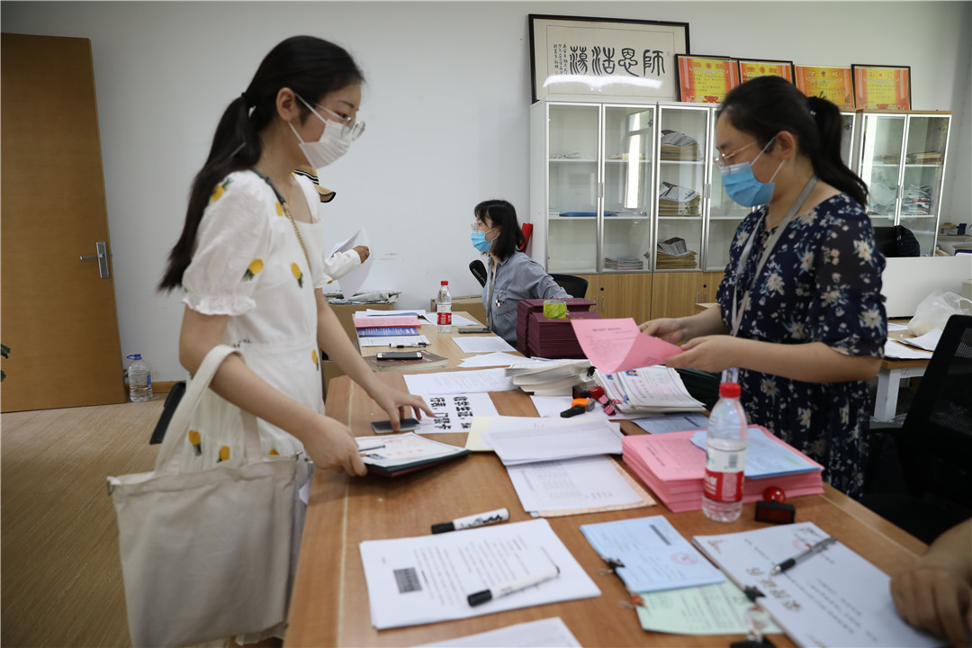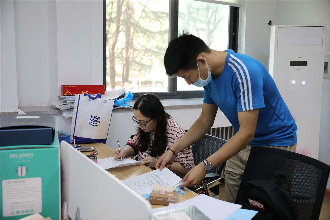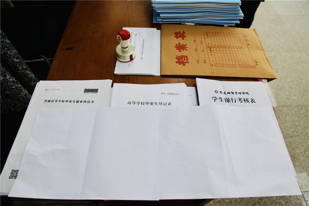 在离校手续办理处,学院简化流程,图书馆等部门安排专业人员深入学生所在学院,现场一站式办理离校手续,发放毕业证、学位证,为学生提供优质的服务。