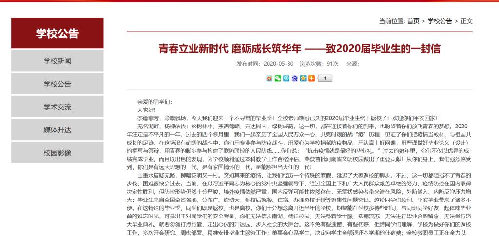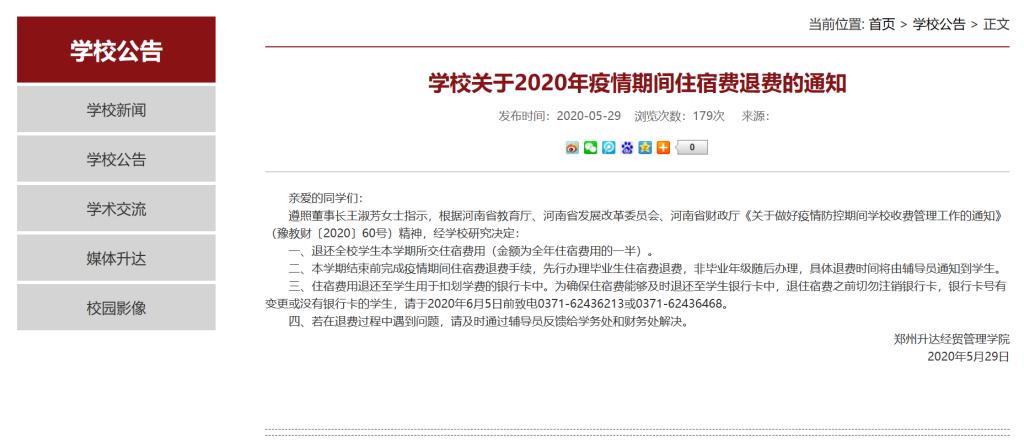 近期,董事会和校党政领导心系学生,决定向学生全额退还本学期的住宿费。致2020届毕业生的一封信《青春立业新时代 磨砺成长筑华年》更是暖心之举,让升达成了令人羡慕的“别人家的学校”。
