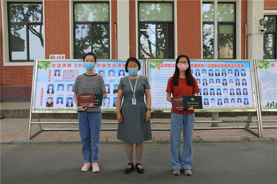 (翘首期盼学生“回家”的文法学院田妍妍老师[中间])