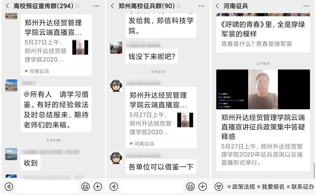 河南省征兵官微“河南征兵”报道我校2020年云端征兵咨询直播工作