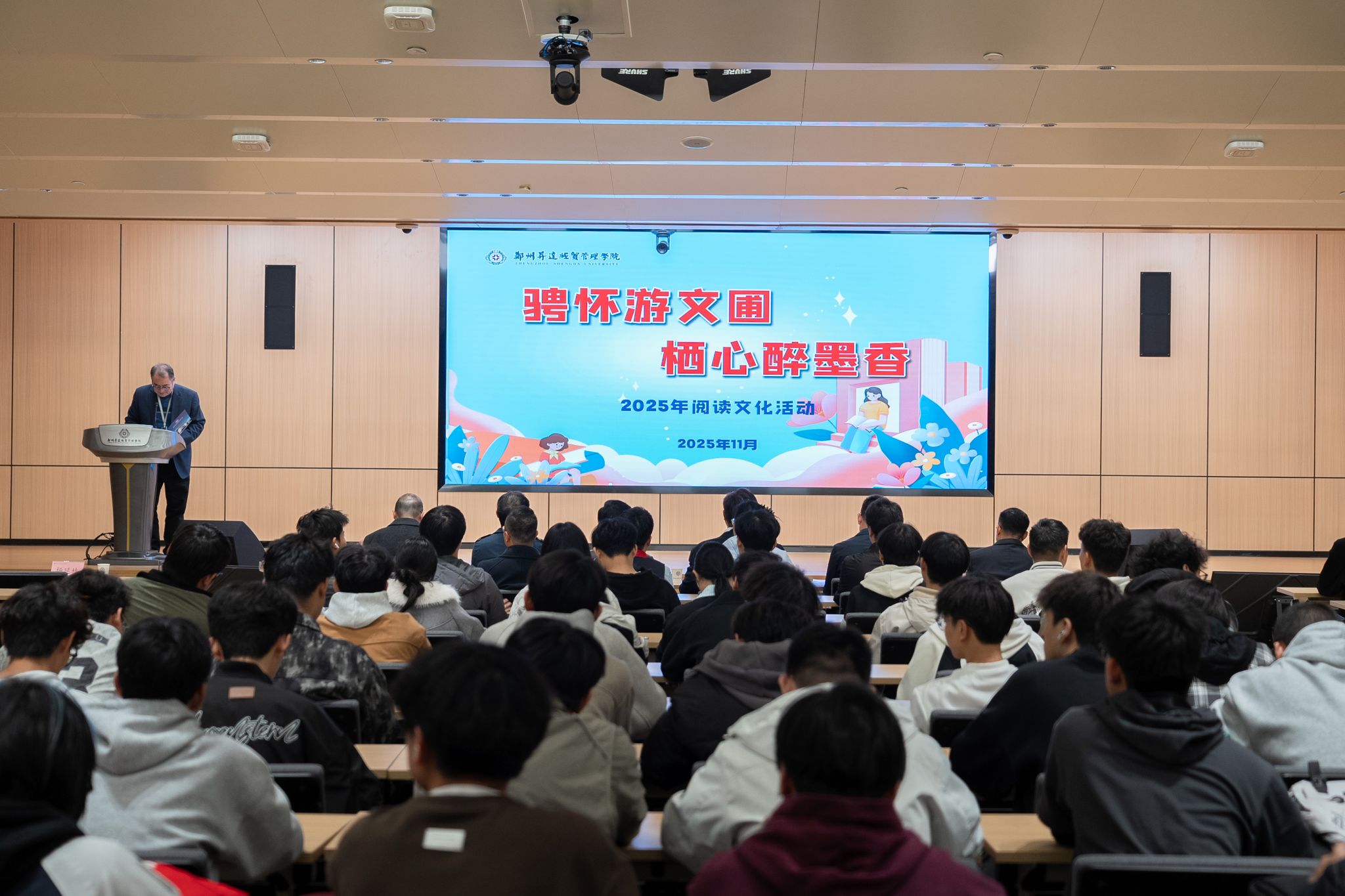 韦杨建宣读了《郑州升达经贸管理学院2025年“骋怀游文圃,栖心醉墨香”阅读文化活动实施方案》,根据方案,学校决定在龙湖、登封两校区同步组织开展阅读文化活动。