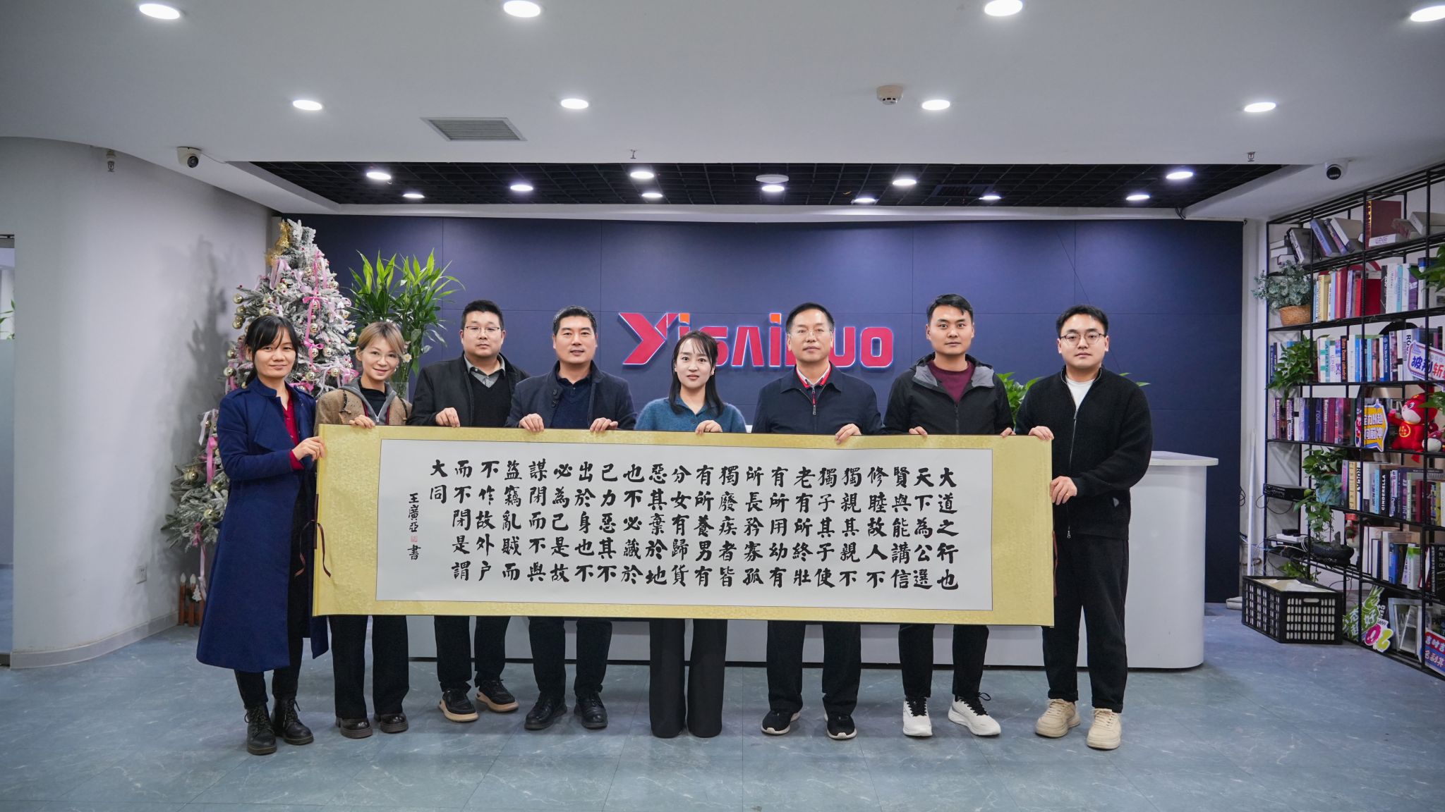 张金安一行参观了企业办公环境,深入了解公司在跨境电商智能营销、独立站建设、全球数字推广等领域的技术实力与业务布局,与在易赛诺工作的升达毕业生亲切交流,鼓励大家好好工作,发扬升达精神,并合影留念。