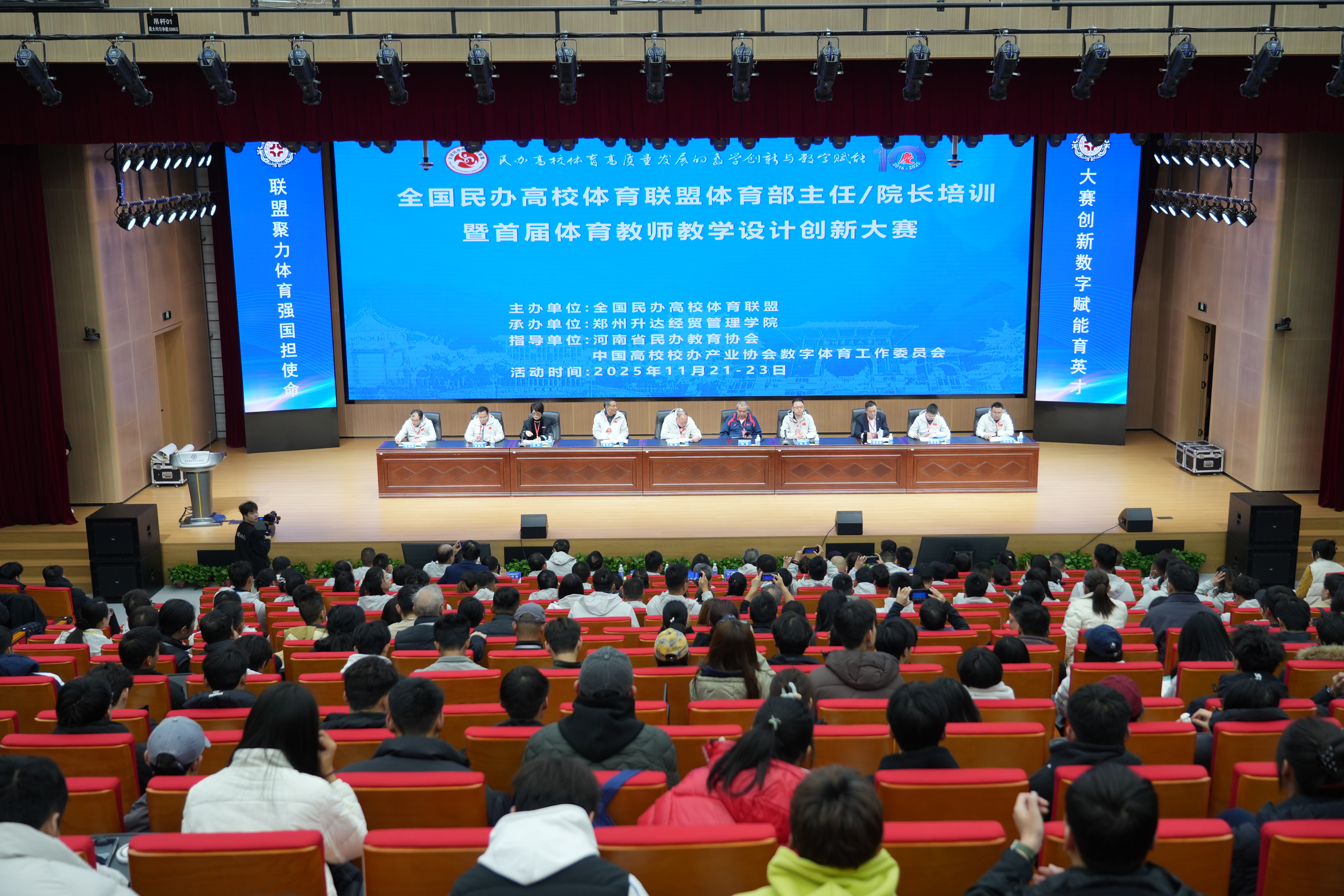 11月22日上午,全国民办高校体育联盟体育部主任/院长培训暨首届体育教师教学设计创新大赛在我校新图书馆隆重开幕。本次大会由全国民办高校体育联盟主办,我校承办。会议旨在学习贯彻党的二十届四中全会精神,推动民办高校体育教育发展,贯彻国家教育和体育政策、构建校际交流平台、提升体育教师专业素养,全方位促进全国民办高校体育教育高质量发展。