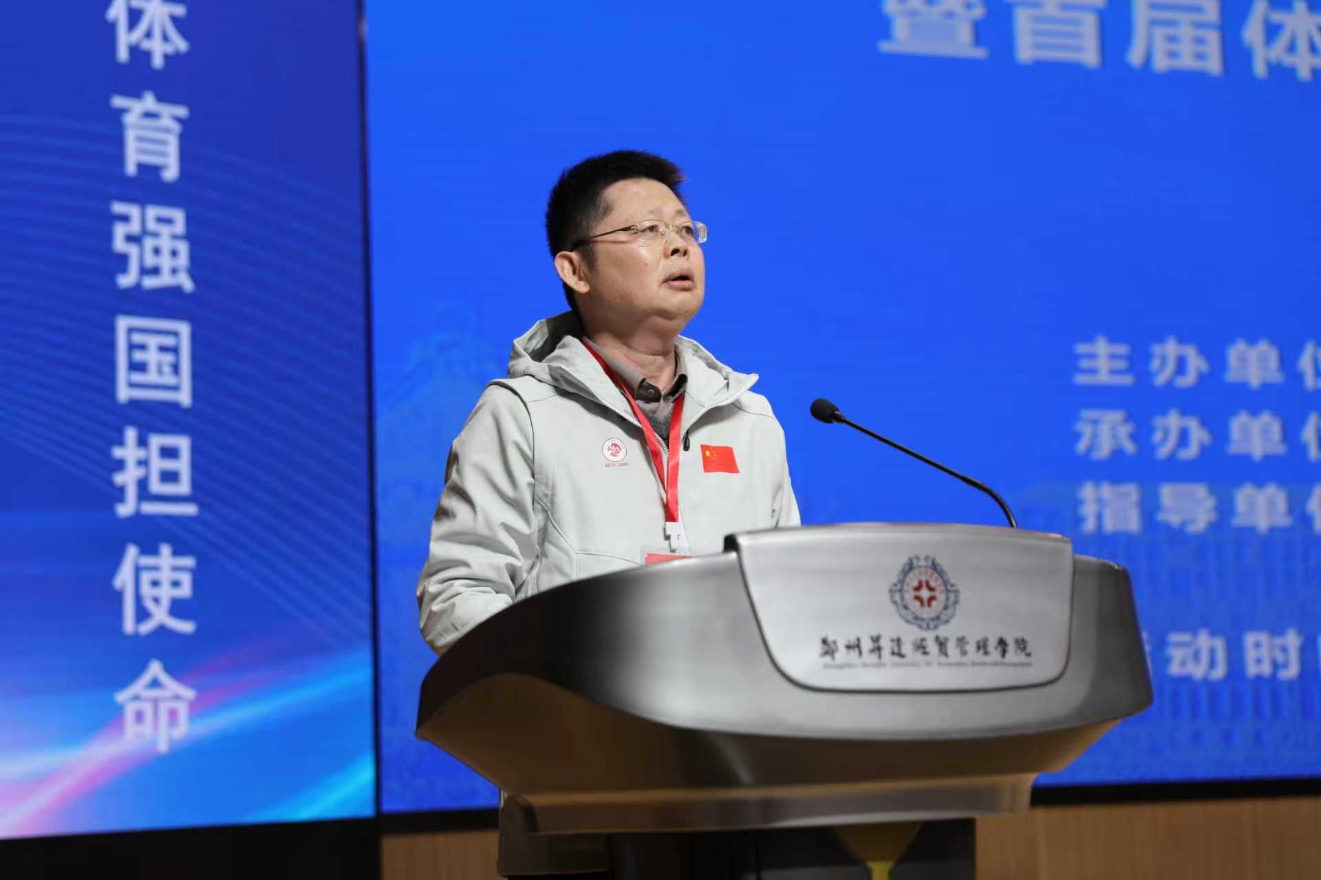 河南省督学、河南财经政法大学原党委副书记刘纯献作《体育充值人生》报告。他围绕“体育如何为人生充值”,阐述体育在个人成长与国家发展中的多维价值,史料翔实、案例生动,引导师生感悟体育的立德树人之道。