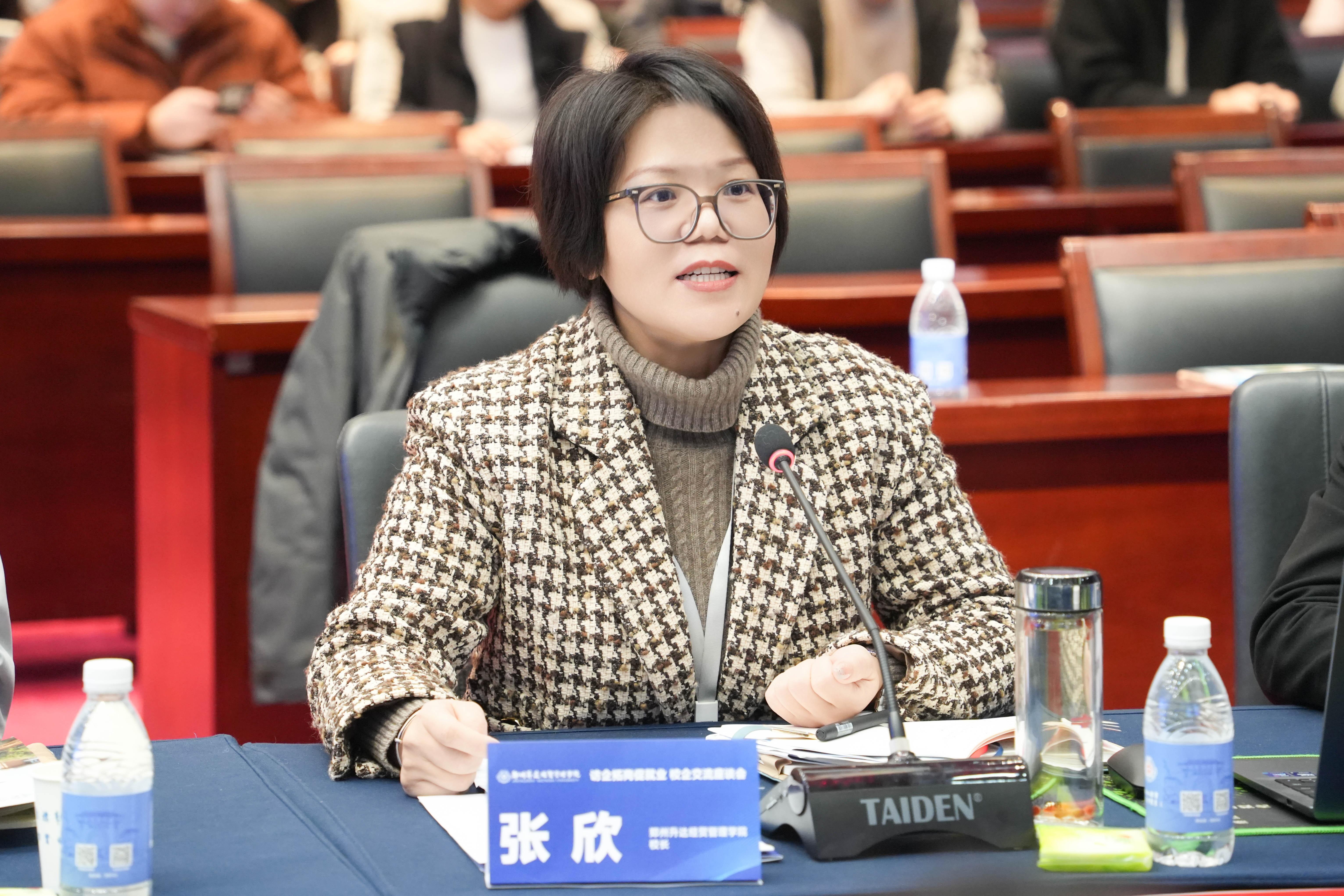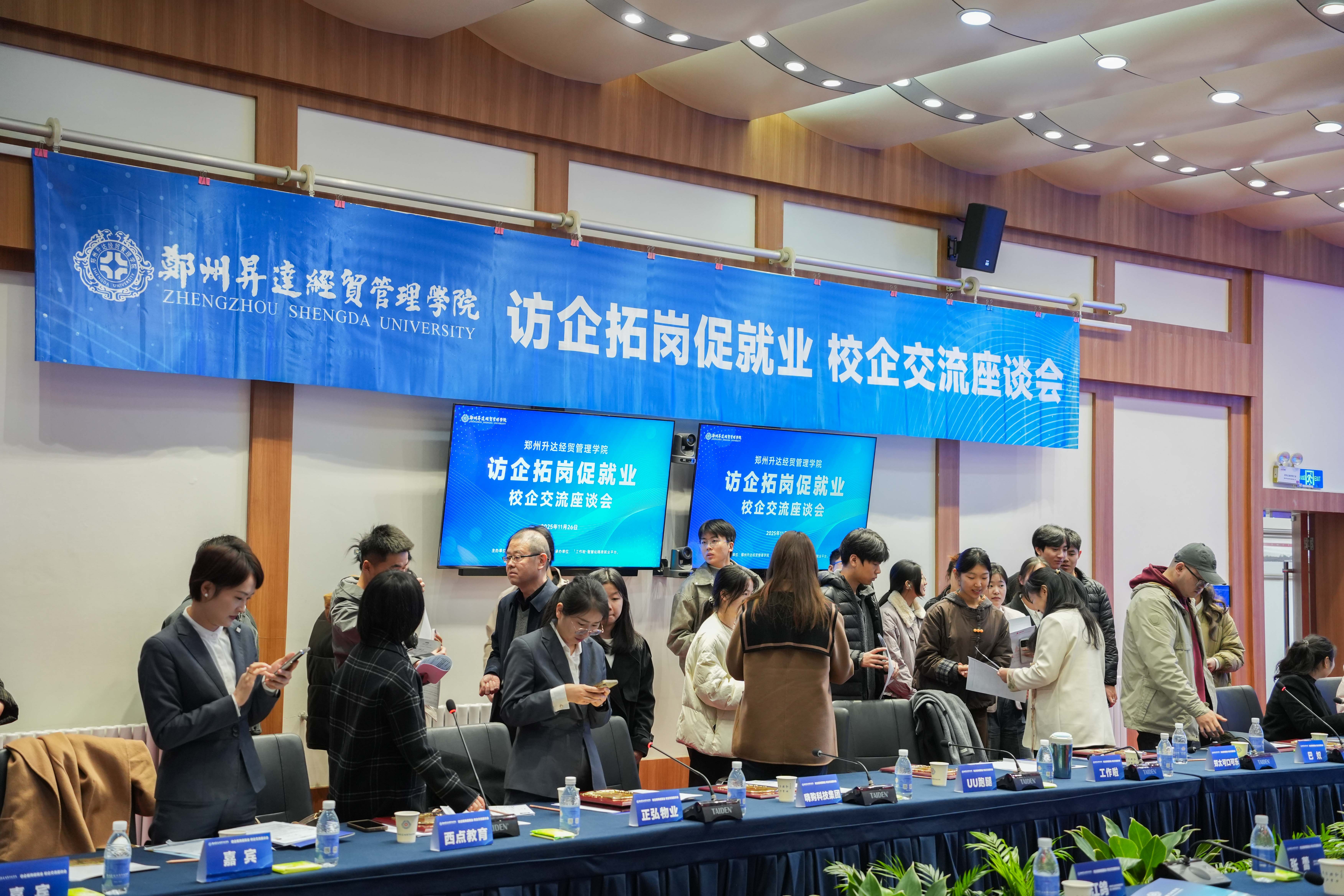 为深入贯彻落实国家关于高校毕业生就业工作的决策部署,深化校企协同育人机制,拓宽毕业生就业渠道,精准对接企业用人需求,11月26日我校成功举办访企拓岗促就业校企交流座谈会。工作啦、uu跑腿、郑太可口可乐、嗨购科技集团、巴奴、正弘物业、核桃编程、西点教育、丽之健等多家企业负责人受邀参会。我校校长、党委副书记张欣,党委委员、副校长张其武以及就业处处长冯科、金融贸易学院党委书记张小雁、会计学院党委书记张蕾、管理学院党委书记职正路、信息工程学院党委书记钟江鸽、体育学院党委书记韩炎涛,就业处工作人员,相关二级学院就业专员和求职毕业生代表们参加了此次座谈会。