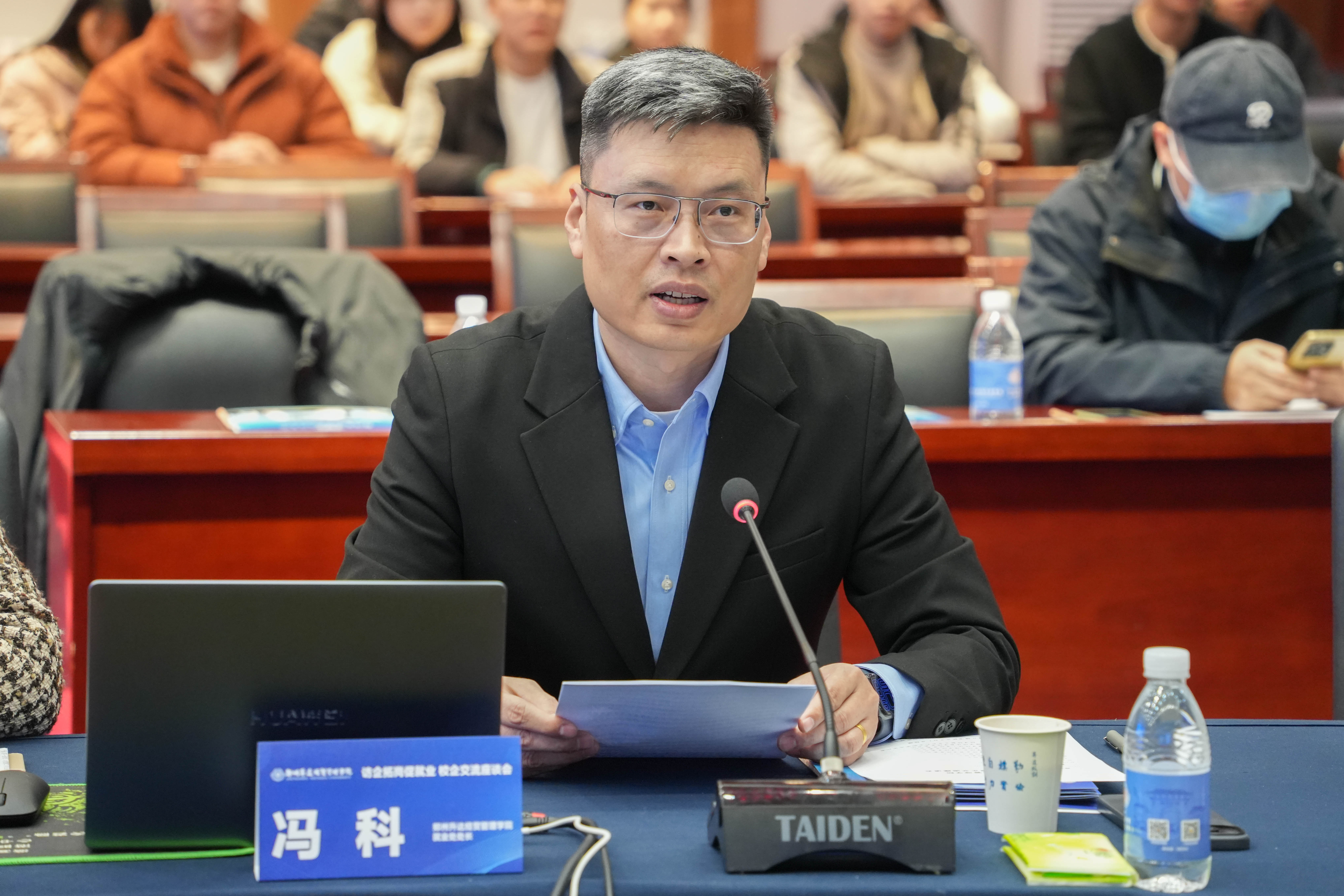 冯科做总结发言。他表示,学校将认真梳理企业提出的意见建议,精准对接企业用人需求,持续优化人才培养方案,搭建更为高效的校企合作平台。同时,他感谢各企业对学校就业工作的大力支持,期待未来与各企业开展更广泛、更深层次的合作。