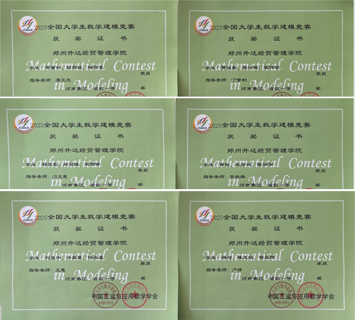 近日,2025年全国大学生数学建模大赛河南赛区获奖名单正式揭晓,我校共组织68支队伍,204名学生参赛,其中51支队伍获奖,河南省一等奖13组,河南省二等奖17组,河南省三等奖21 组。省级一等奖获奖组数和获奖比例再创新高,实现阶段性突破。