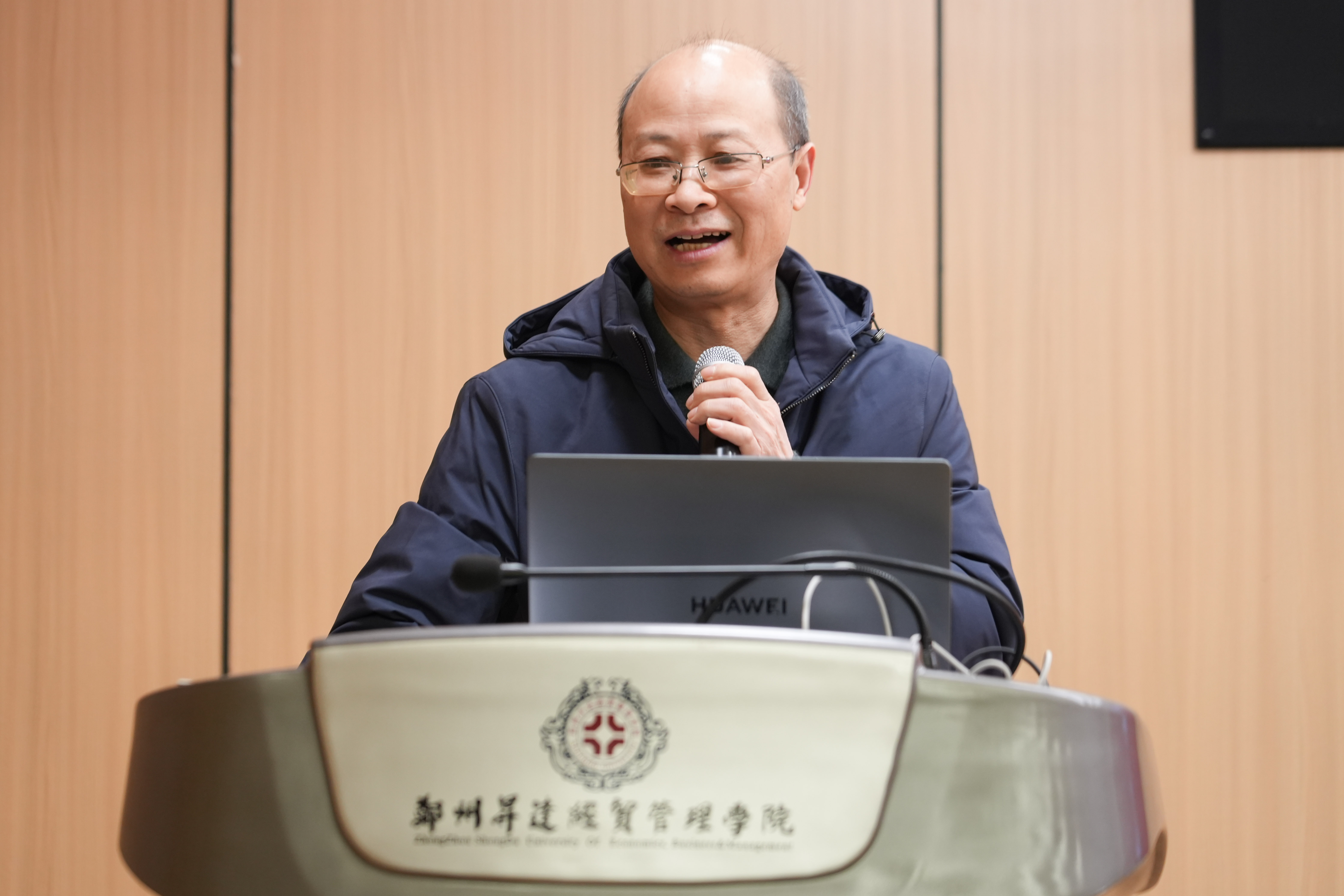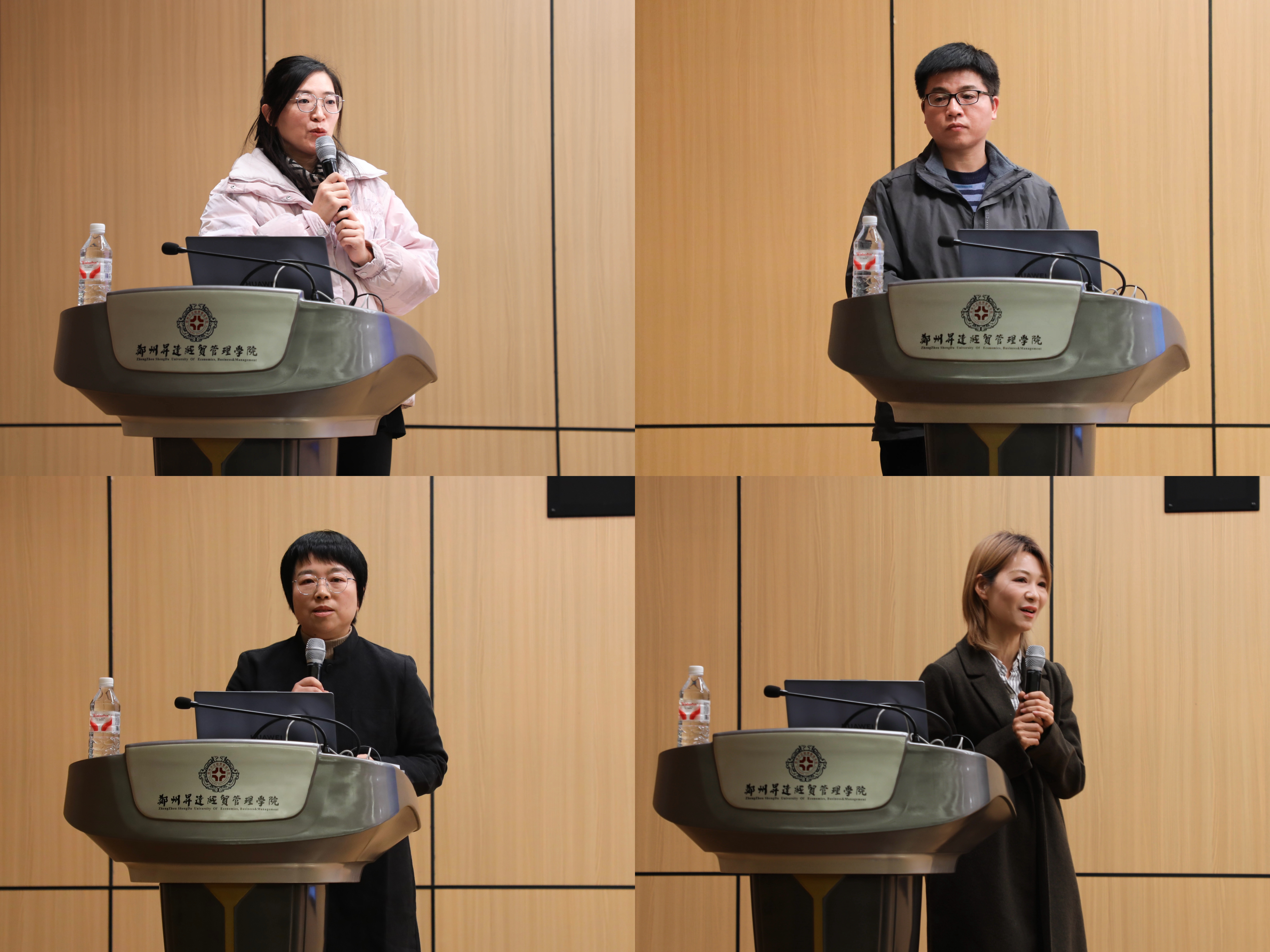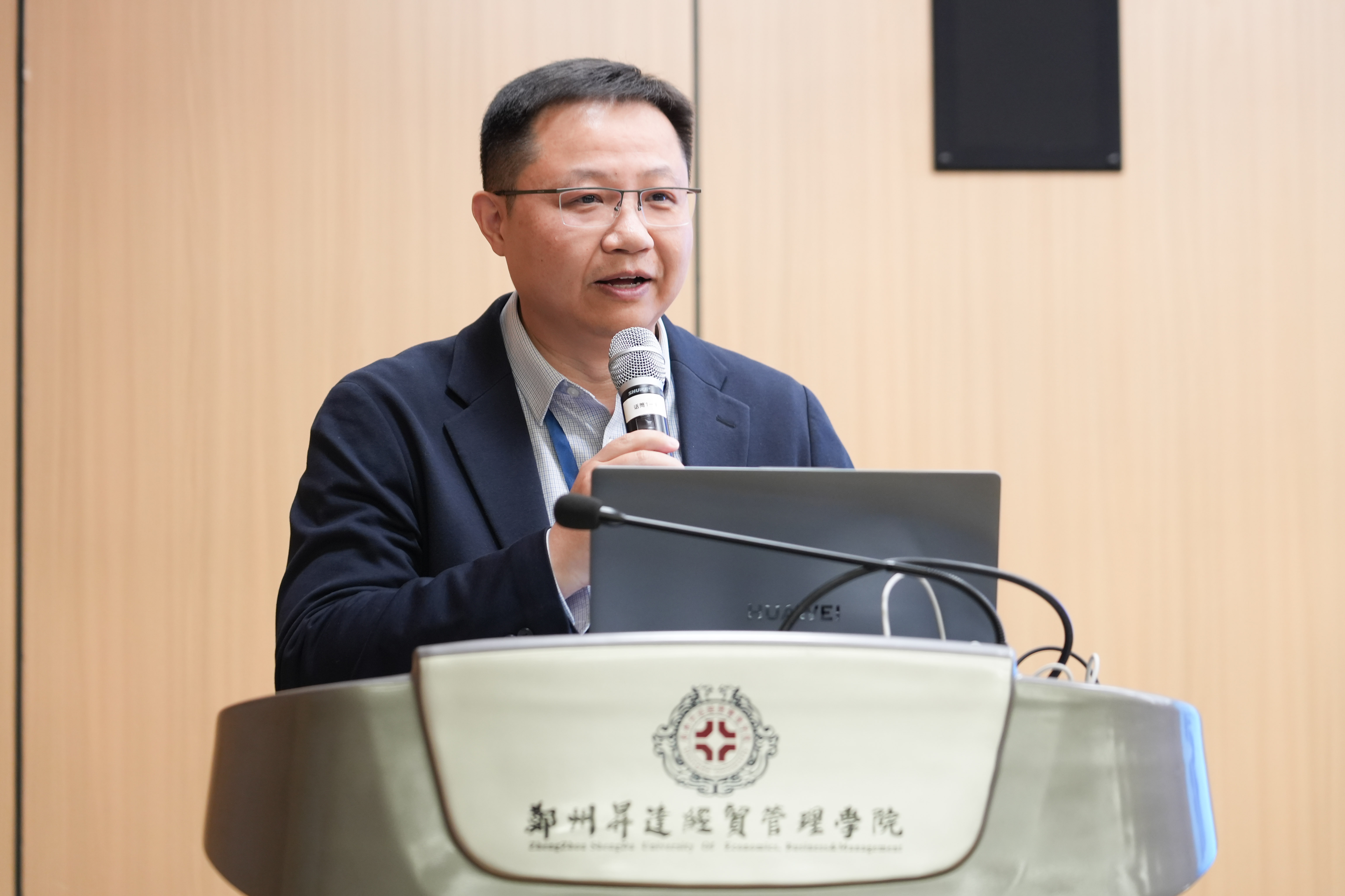 在专题研讨环节,以“人工智能背景下的商务英语专业建设与课程改革”为核心,多位高校教师分享了实战经验。河南工学院王旭东副教授探讨了产教融合下的《国际商务谈判》课程设计,强调以实战案例深化校企合作;郑州商学院葛莹辉副教授介绍了“政校行企协同、课岗证赛融通”的人才培养模式,展示如何通过多元协同提升学生实践能力;河南财经政法大学白雅副教授分享了专业转型之路,呼吁直面挑战,通过电商直播等创新形式深化产教融合;郑州师范学院赵芳副教授聚焦AIGC赋能师生数智素养提升,解析技术如何优化教学与科研;中原科技学院杨庆云老师强调了新文科背景下的守正创新,主张坚守专业核心的同时突破传统边界;黄河科技学院贾和平副教授提出基于“2+1+1”的产教融合型课程体系,探索理论与实践的无缝衔接;新乡学院李洁副教授勾勒了绿色商务背景下的人才画像,强调可持续发展理念在人才培养中的融入;我校张华嵩副教授则分享了本校商务英语专业的实践探索,突出“外语+”特色与地方服务导向。研讨会由郑州商学院邱培磊教授主持,专家们就课程改革、师资建设等议题热烈交流,为一线教学提供了可操作方案。