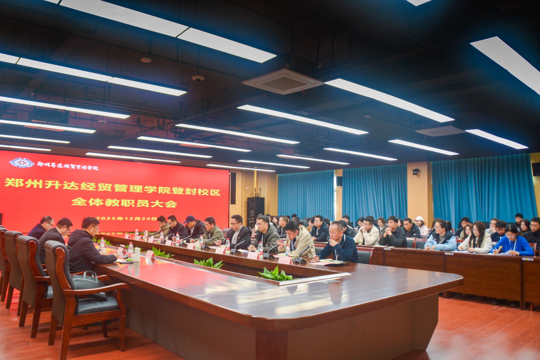 12月24日下午,登封校区全体教职员大会在多功能会议室召开。董事长王新奇博士、校区党工委书记沈定军、董事会办公室主任杨存博出席会议,校区各部门负责人及全体教职员参加,会议由沈定军书记主持。