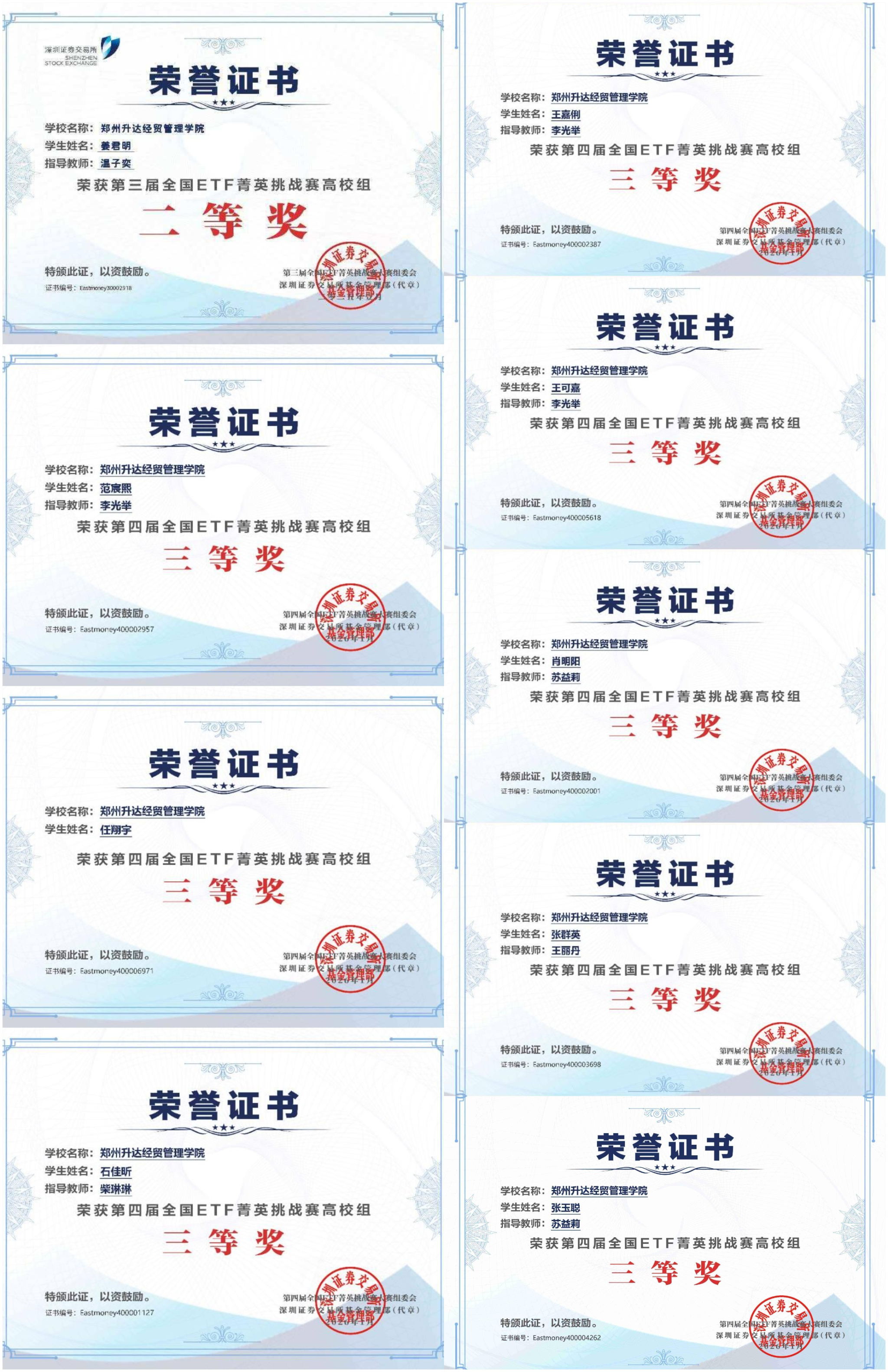 为全面提升金融专业人才质量,培养高素质创新实践技能人才,我校金融贸易学院积极组织学生参加第四届“全国ETF菁英挑战赛”,21名学生在李光举、柴琳琳、温子奕、苏益莉等教师的精心指导下,凭借出色的投资分析能力和稳健的风险控制策略,最终获得二等奖1项、三等奖8项,充分展现了我校学子扎实的专业功底与出色的实践能力。
