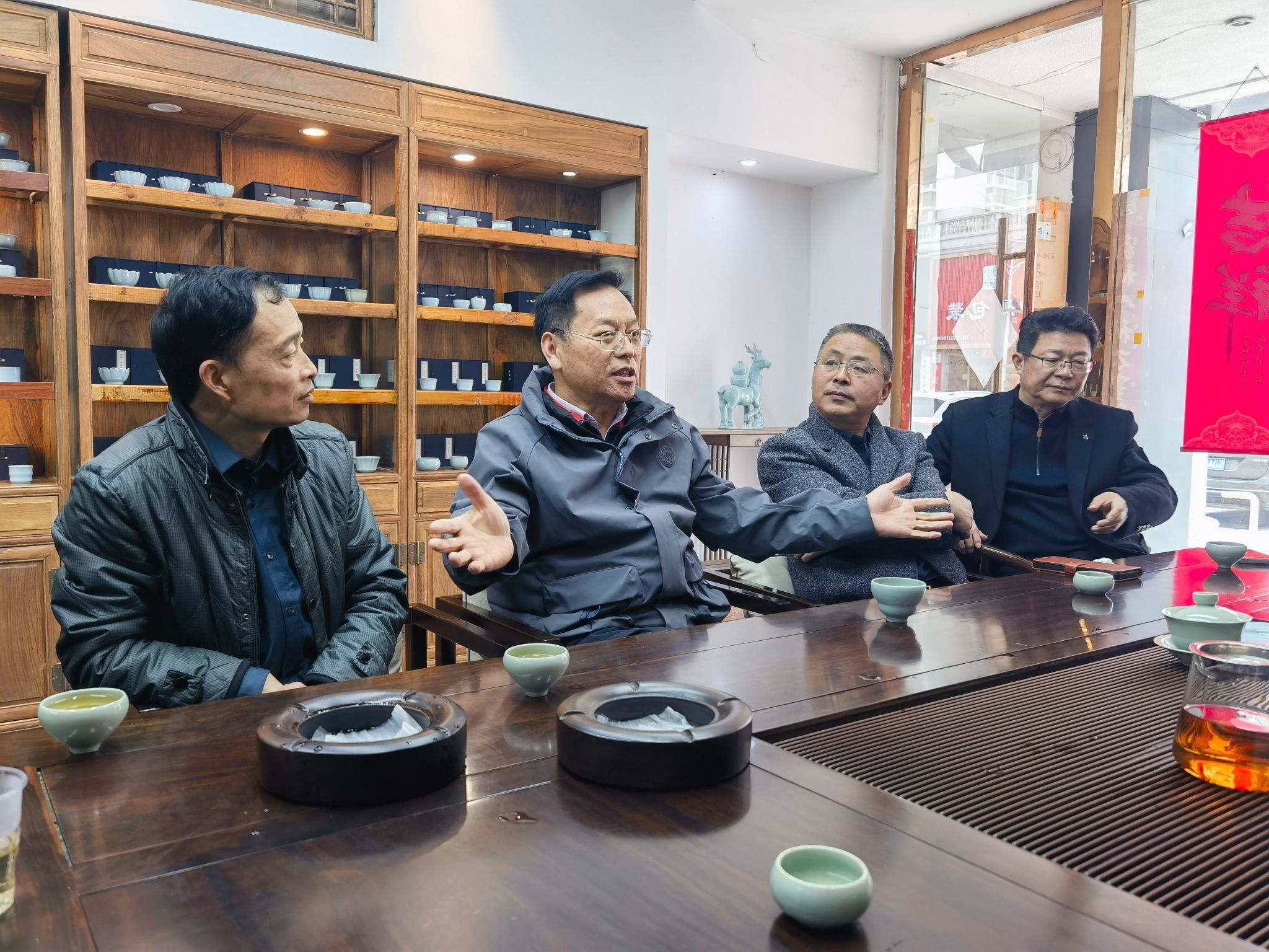 张金安一行首先来到李红杰校友的汝瓷张企业,实地参观汝瓷文化展示区,详细了解汝瓷的制作工艺、文化传承以及企业的经营发展、人才需求等情况,与李红杰校友就汝瓷文化传承、校企文化交流、毕业生实习就业等方面进行深入交流。