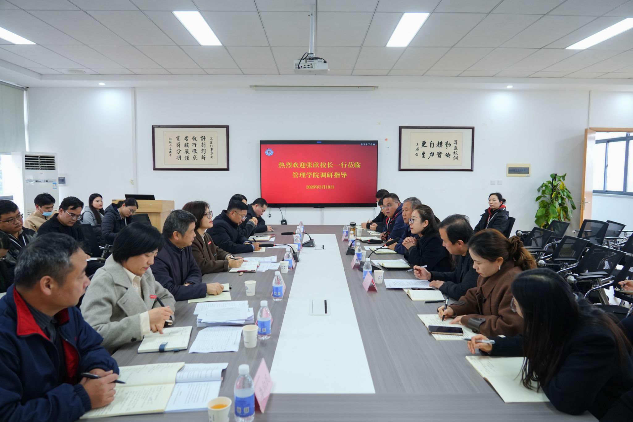3月19日下午,校长张欣教授深入管理学院指导工作。教务处、纪委办公室、党委教师工作部、人事处、教师发展中心、财务处、科研处、教学质量监测与评估中心、学科建设办公室(申硕办公室)、创新生态统筹中心等职能部门负责人、工作人员参加调研。管理学院领导班子成员、各教研室主任及教师代表参加调研座谈会。