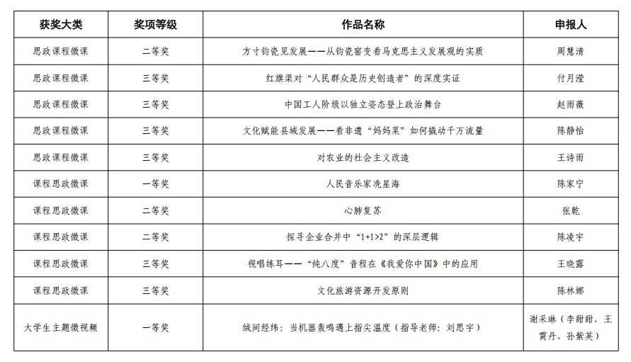 此次多项作品获奖,既是我校坚持落实立德树人根本任务、持续推进思政课程与课程思政协同育人的生动体现,也充分展现了我校“大思政课”建设与思政教育改革创新的扎实成效。下一步,我校将以此次活动为新起点,持续深化“大思政”育人格局建设,不断创新思政教育载体与形式,充分发挥获奖作品的示范引领作用,推动思政教育走深走实、入脑入心,助力学校人才培养质量提质增效。